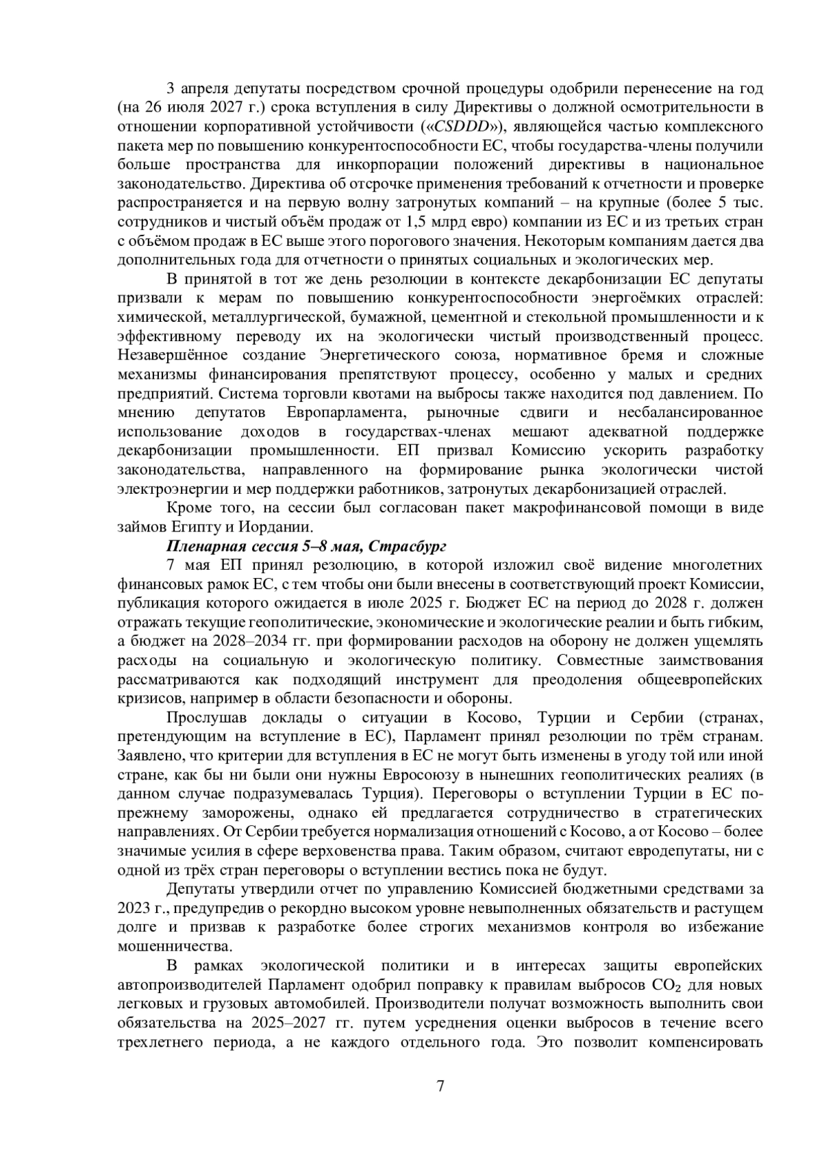 Весной 2025 г. институты ЕС продолжили переговоры по целому ряду проектов законодательных актов, которые проходили в обстановке сохраняющихся разногласий