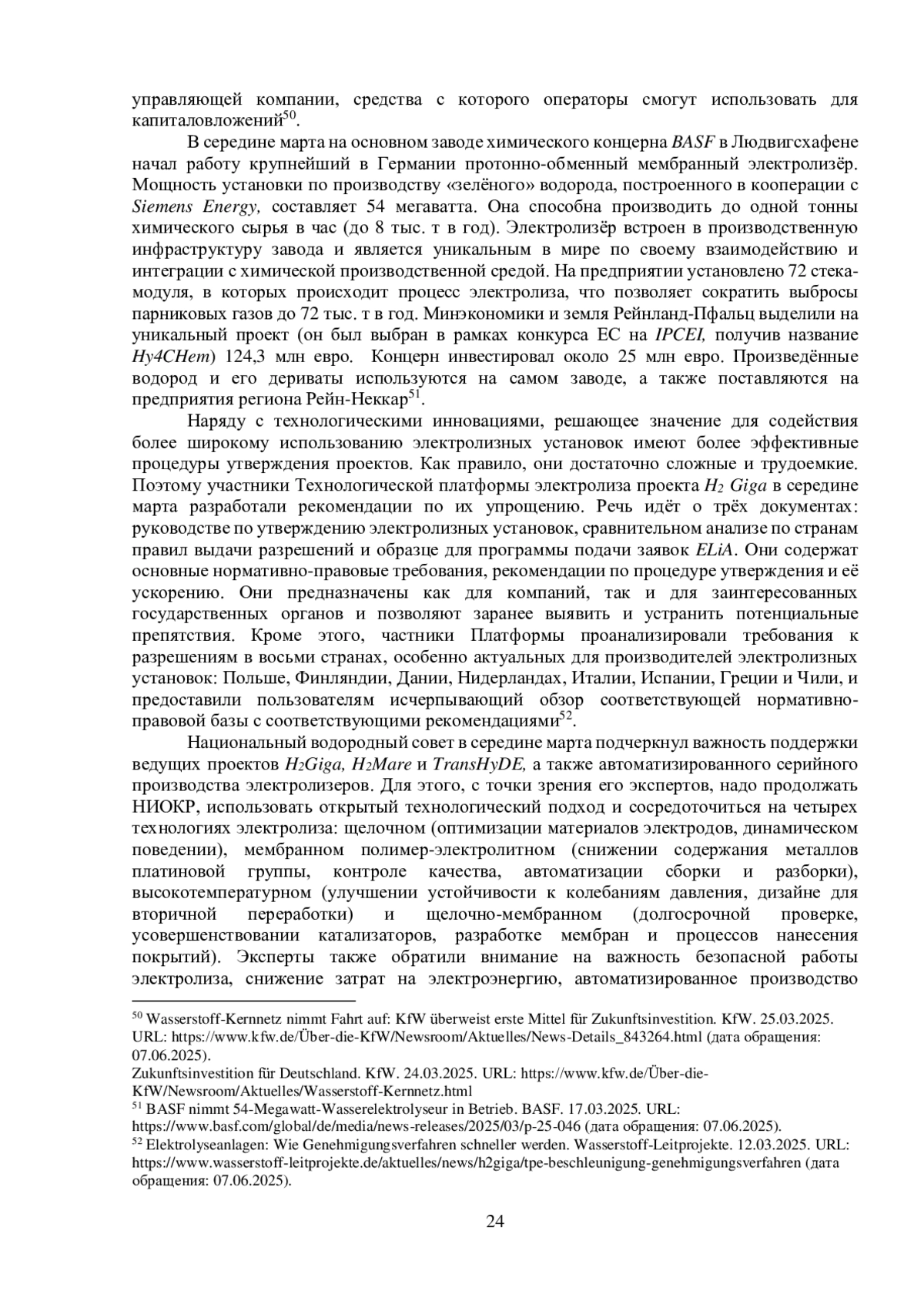 В сфере финансирования водородной инфраструктуры Европейский водородный банк завершил в марте приём заявок по второму пилотному аукциону для производителей возобновляемого водорода – он выделил 2,2 млрд евро на субсидирование разницы в издержках. Подведение итогов ожидается во втором полугодии 2025 г