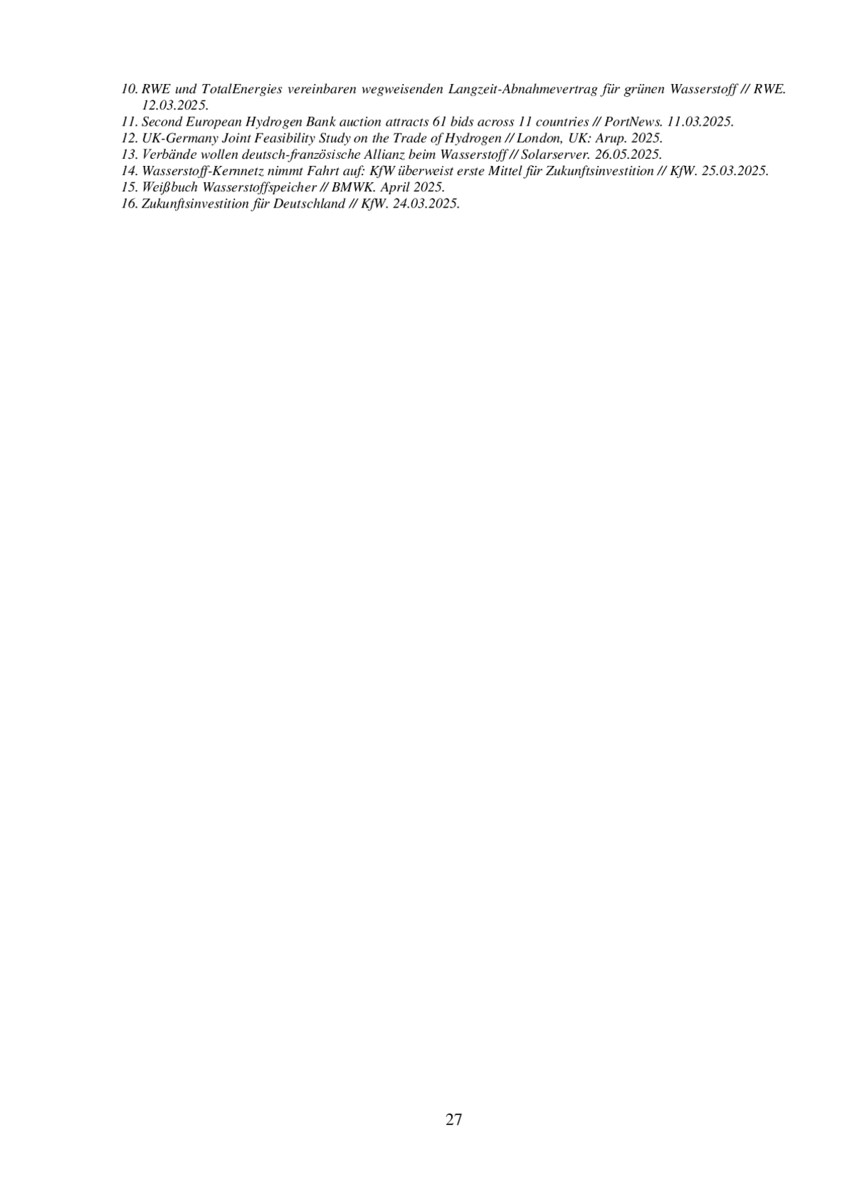 13. Verbände wollen deutsch-französische Allianz beim Wasserstoff // Solarserver. 26.05.2025.