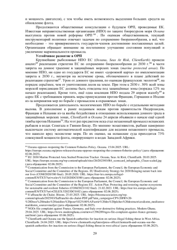 Министры государств-членов ЕС, ответственные за рыболовную политику, провели 24 марта рабочий обед с целью уточнения позиций по возможной реформе ОРП. Одной из тем, которую поднимала председательствующая польская сторона, стало упрощение регулирования рыболовства в связи с обилием различных норм и правил59. Французская делегация обратила внимание на нереалистичность некоторых требований в части контроля промысла, например, установки камер на судах для контроля доставки улова в порт.