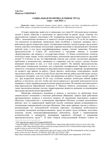 1. Council of the European Union. Employment and social aspects of the 2025 Recommendation on the economic policy of the euro area. Brussels. 25 February 2025 (OR. en). 6274/25.
