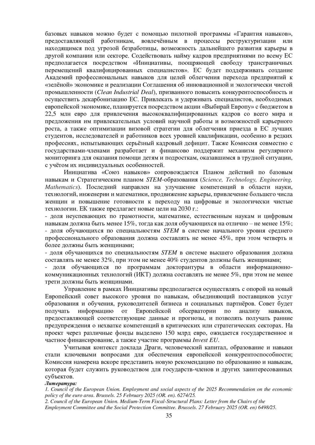 4. European Commission. Brussels.Communication from the Commission to the European Parlament, the European Council, the Council, the European Economic and Social Committee and the Committee of the Regions. The Union of Skills. 05.03.2025.COM. 2020.N 90 final.