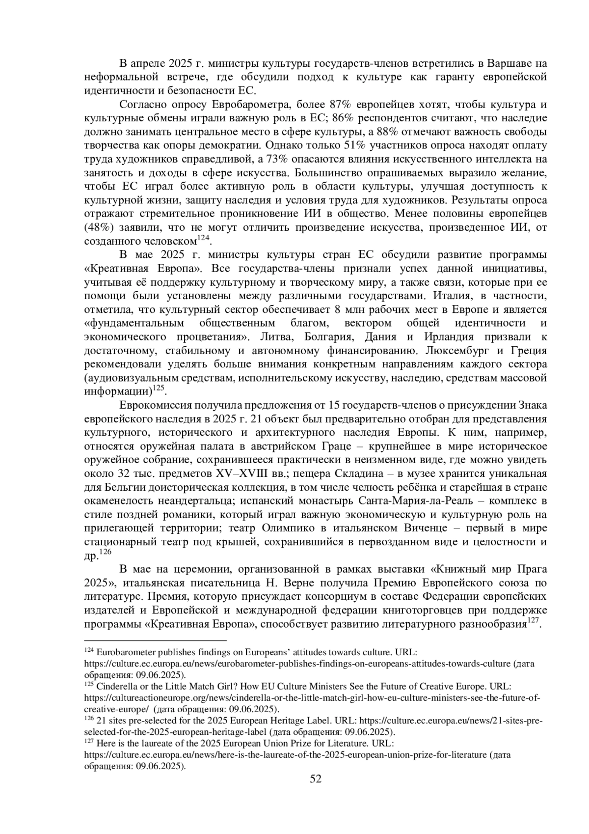 4. Eurobarometer publishes findings on Europeans’ attitudes towards culture // Culture.ec.europa.eu. 09.06.2025.