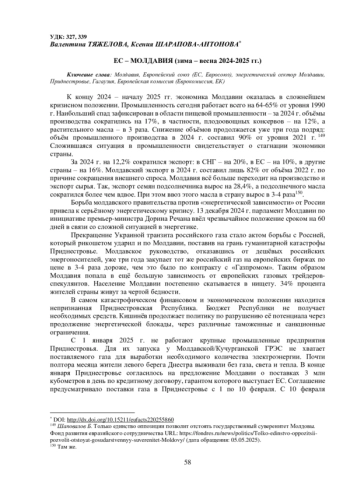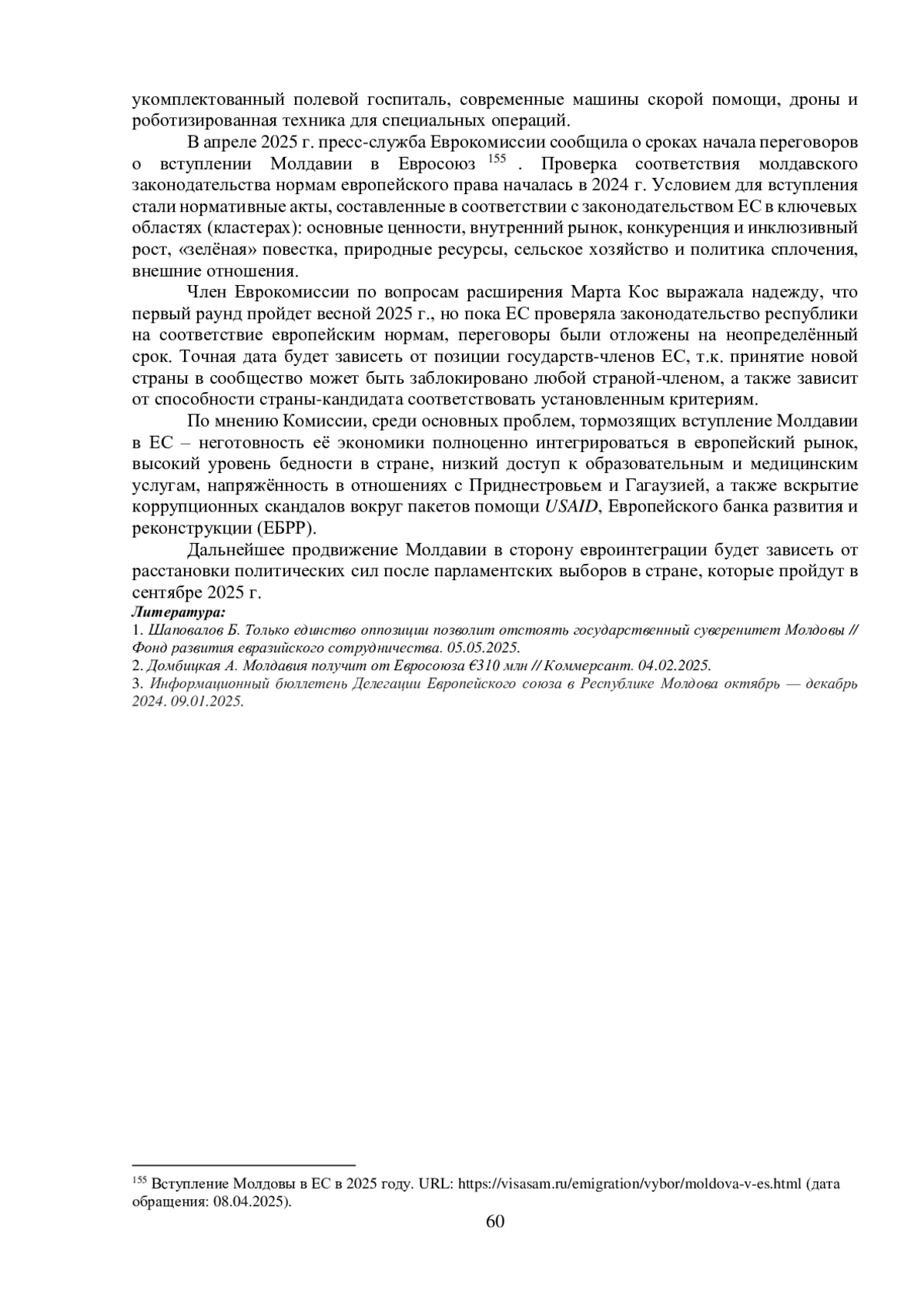 2. Домбицкая А. Молдавия получит от Евросоюза €310 млн // Коммерсант. 04.02.2025.