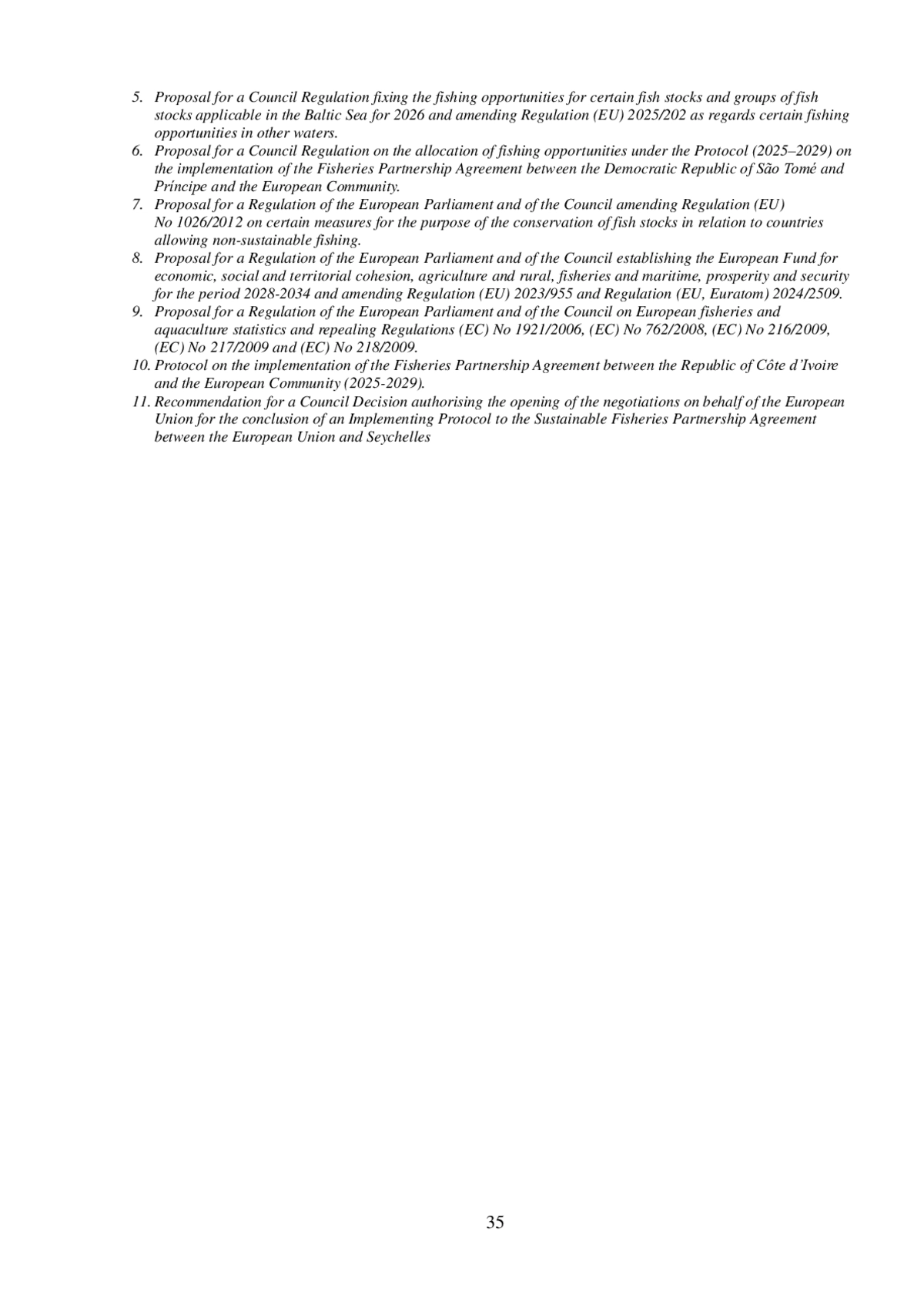 5. Proposal for a Council Regulation fixing the fishing opportunities for certain fish stocks and groups of fish stocks applicable in the Baltic Sea for 2026 and amending Regulation (EU) 2025/202 as regards certain fishing opportunities in other waters.