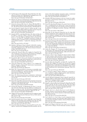 179. Spaander MCW, van der Bogt RD, Baron TH, Albers D, Blero D, de Ceglie A, Conio M, Czakó L, Everett S, Garcia-Pagán JC, Ginès A, Jovani M, Repici A, Rodrigues-Pinto E, Siersema PD, Fuccio L, van Hooft JE. Esophageal stenting for benign and malignant disease: European Society of Gastrointestinal Endoscopy (ESGE) Guideline - Update 2021. Endoscopy. 2021;53(7): 751-762. DOI: 10.1055/a-1475-0063