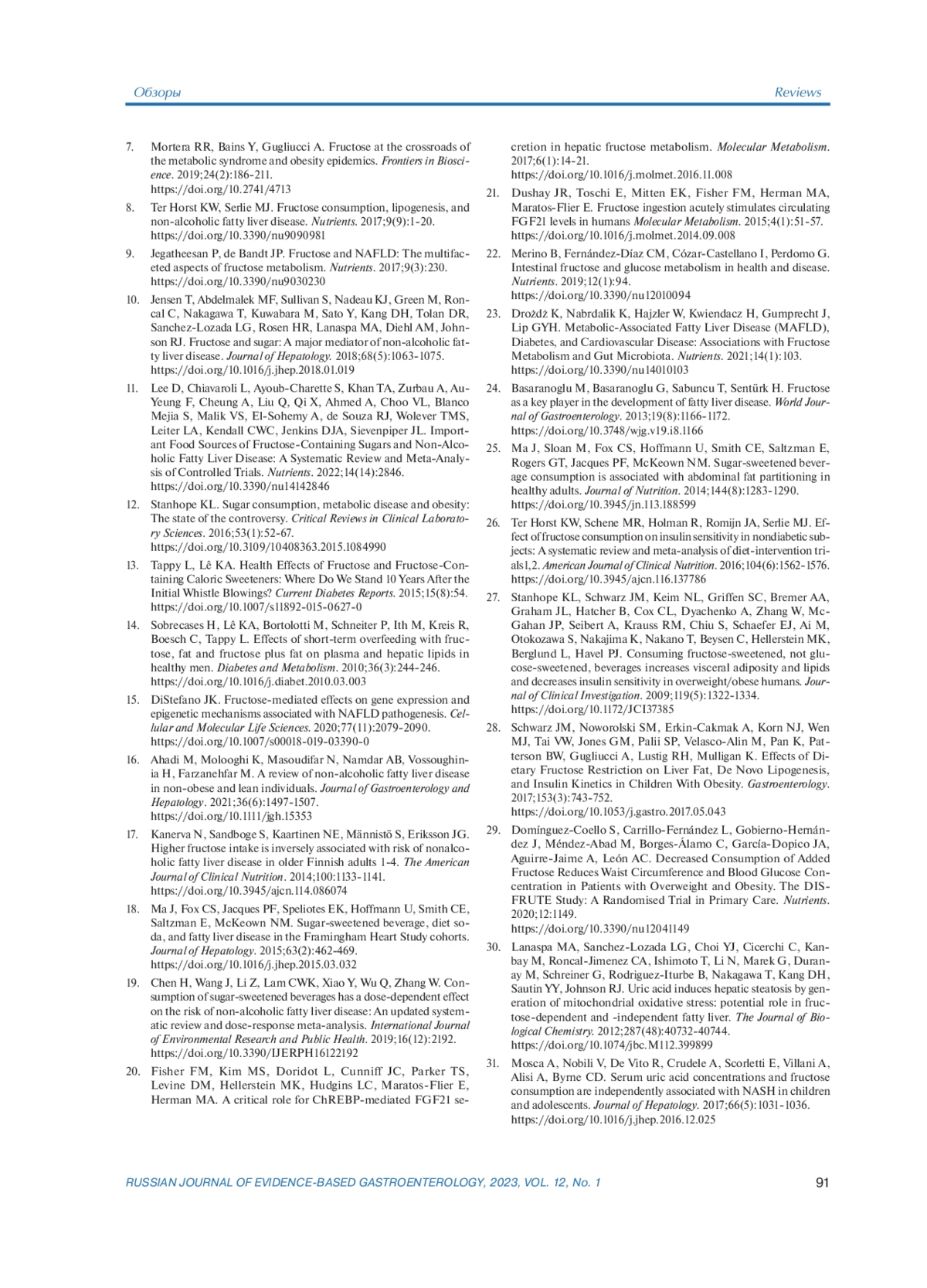 22. Merino B, Fernández-Díaz CM, Cózar-Castellano I, Perdomo G. Intestinal fructose and glucose metabolism in health and disease. Nutrients. 2019;12(1):94. DOI: 10.3390/nu12010094