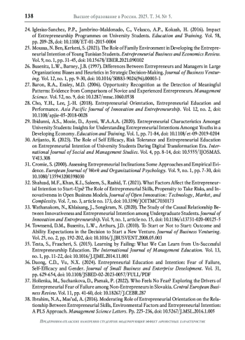 11. Entrialgo M., Iglesias V. Entrepreneurial Intentions among University Students: The Moderating Role of Creativity // European Management Review. 2020. Vol. 17. No. 2. P. 529-542. DOI: 10.1111/emre.12386 EDN: PNHNDQ
