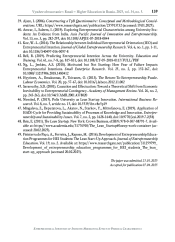 40. Anwar I., Saleem I. Exploring entrepreneurial characteristics among university students: an evidence from India // Asia Pacific Journal of Innovation and Entrepreneurship. 2019. Vol. 13. No. 3. P. 282-295. DOI: 10.1108/APJIE-07-2018-0044