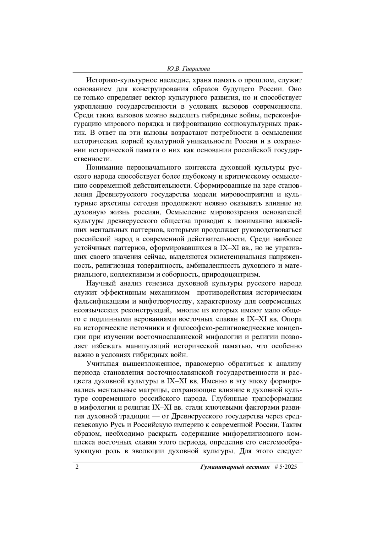 В современной России исследование историко-культурного наследия приобретает особую значимость. Масштабный социокультурный кризис, охвативший страну с 1990-х годов, до сих пор проявляется в снижении духовного потенциала народа, трансформации ценностных ориентаций и размывании идентичности. В этих условиях важно не только изучать и сохранять объекты материальной культуры, но и уделять внимание феноменам духовной культуры, составляющим ядро социокультурной идентичности российского народа — традиционным ценностям, смыслам и символам, этнокультурным традициям, обычаям и верованиям различных этнических групп.