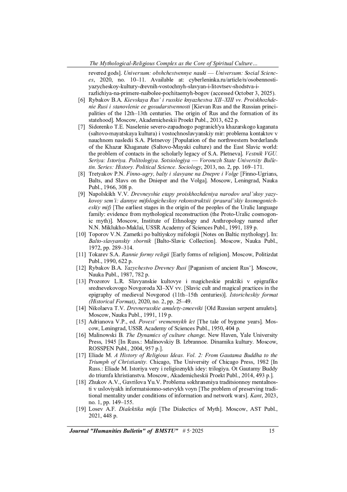 5. Хазанович М.В., Кулабухов В.С. Особенности языческой культуры древних восточных славян и литовцев: сходства и различия на примере наиболее почитаемых богов. Universum: общественные науки, 2020, № 10-11. URL: https://cyberleninka.ru/article/n/osobennosti-yazycheskoy-kultury-drevnih-vostochnyh-slavyan-i-litovtsev-shodstva-i-razlichiya-na-primere-naibolee-pochitaemyh-bogov (дата обращения 03.10.2025).