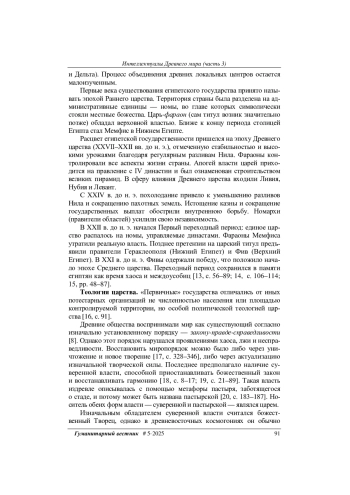 Исследован феномен ранних государств Древнего Египта и Месопотамии через анализ их политической теологии. Выявлены сакральные основания царской власти и опреде-лен статус носителей знания в структуре первых государственных образований. Показано, что «первичные» государства представляли собой сложные ритуально-символические системы («государства-храмы»), основанные на теологии цар-ственности. Власть монарха трактовалась как делегированная свыше и сочетающая суверенные и пастырские функции. Научная новизна заключается в идентификации жрецов-заклинателей (ишибов в Месопотамии и херихебов в Египте) как первых ин-теллектуалов древности, которые сочетали эзотерические знания с высоким поло-жением в государственной иерархии. Особое внимание уделено роли письменности не только как инструменту управления, но и как сакральному явлению.