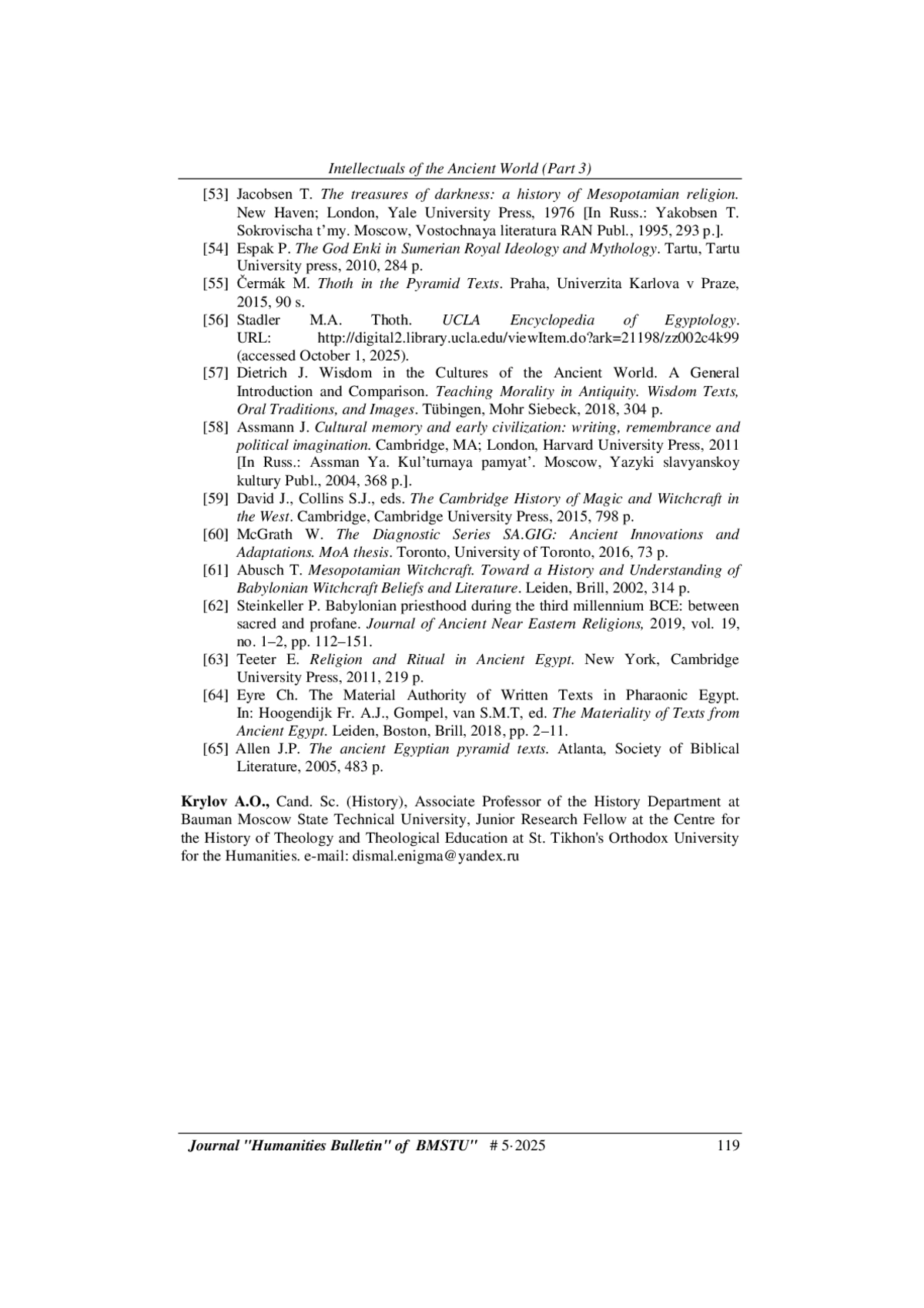 9. Крылов А.О. Интеллектуалы Древнего мира (часть 2). Гуманитарный вестник, 2024, вып. 6.