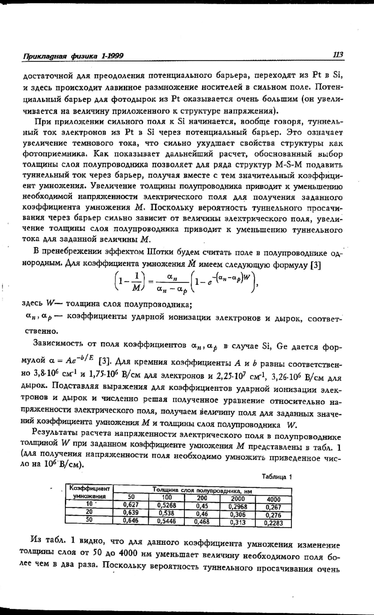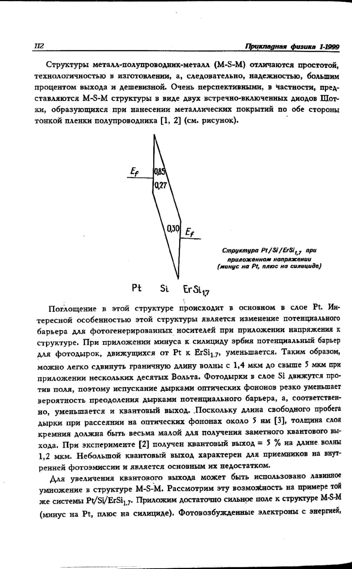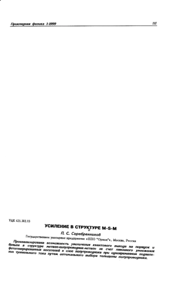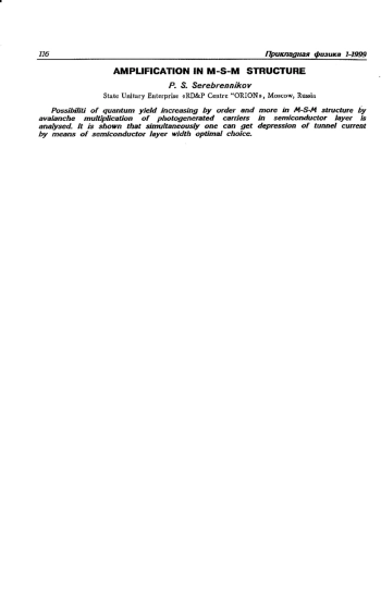 Проанализирована возможность увеличения квантового выхода на порядок и больше в структуре металл-полупроводник-металл за счет лавинного умножения фотогенерированных носителей в слое полупроводника при одновременном подавлении туннельного тока путем оптимального выбора толщины полупроводника