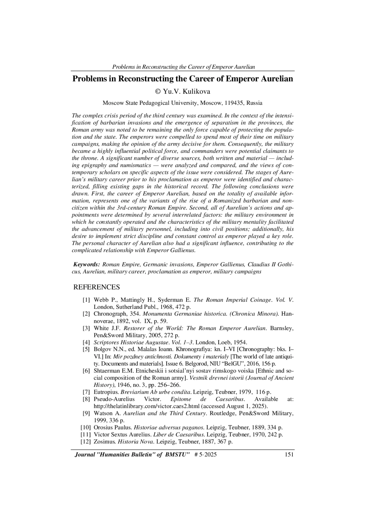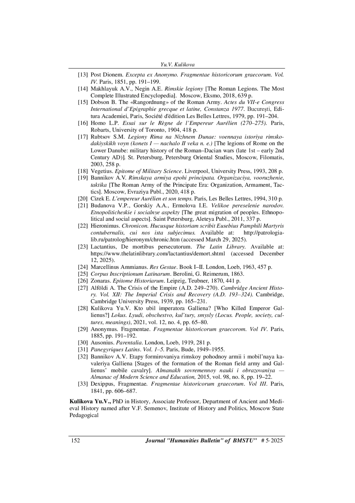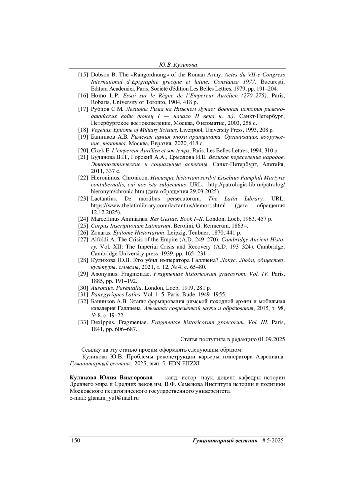 28. Куликова Ю.В. Кто убил императора Галлиена? Локус. Люди, общество, культуры, смыслы, 2021, т. 12, № 4, с. 65-80.