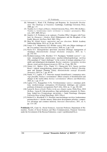 15. Лапина И.Ю., Каргапольцев С.Ю. Цивилизационные вызовы и системные проблемы отечественного социогенеза. Ч. 9. Клио, 2024, № 11, с. 256-265.