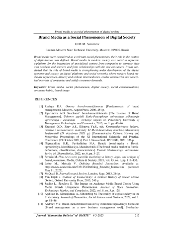 9. Saulīte L., Ščeulovs D. The Impact on Audience Media Brand Choice Using Media Brands Uniqueness Phenomenon. Journal of Open Innovation: Technology, Market, and Complexity, 2022, vol. 8, no. 3, p. 128.