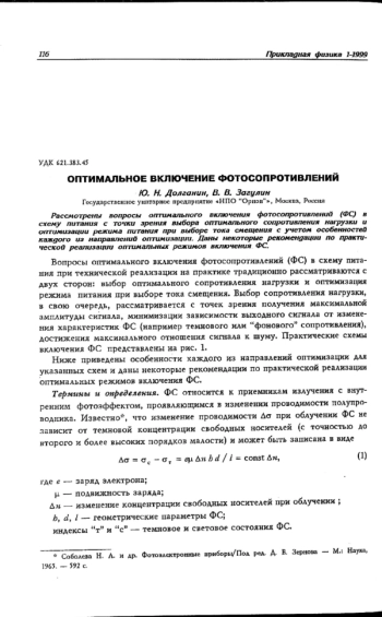 Оптимизация сопротивления нагрузки по критерию минимальной зависимости выходного сигнала от изменений темнового сопротивления ФС для низкоомных приемников излучения имеет побочный эффект - возрастает коэффициент электрической связи.