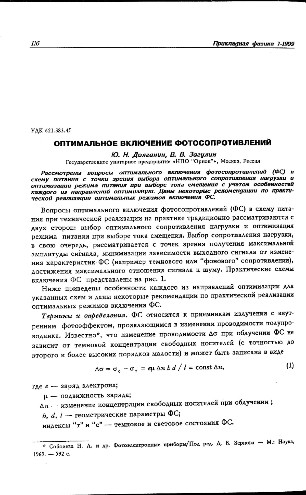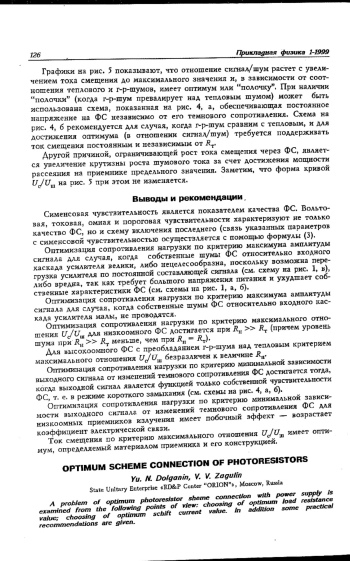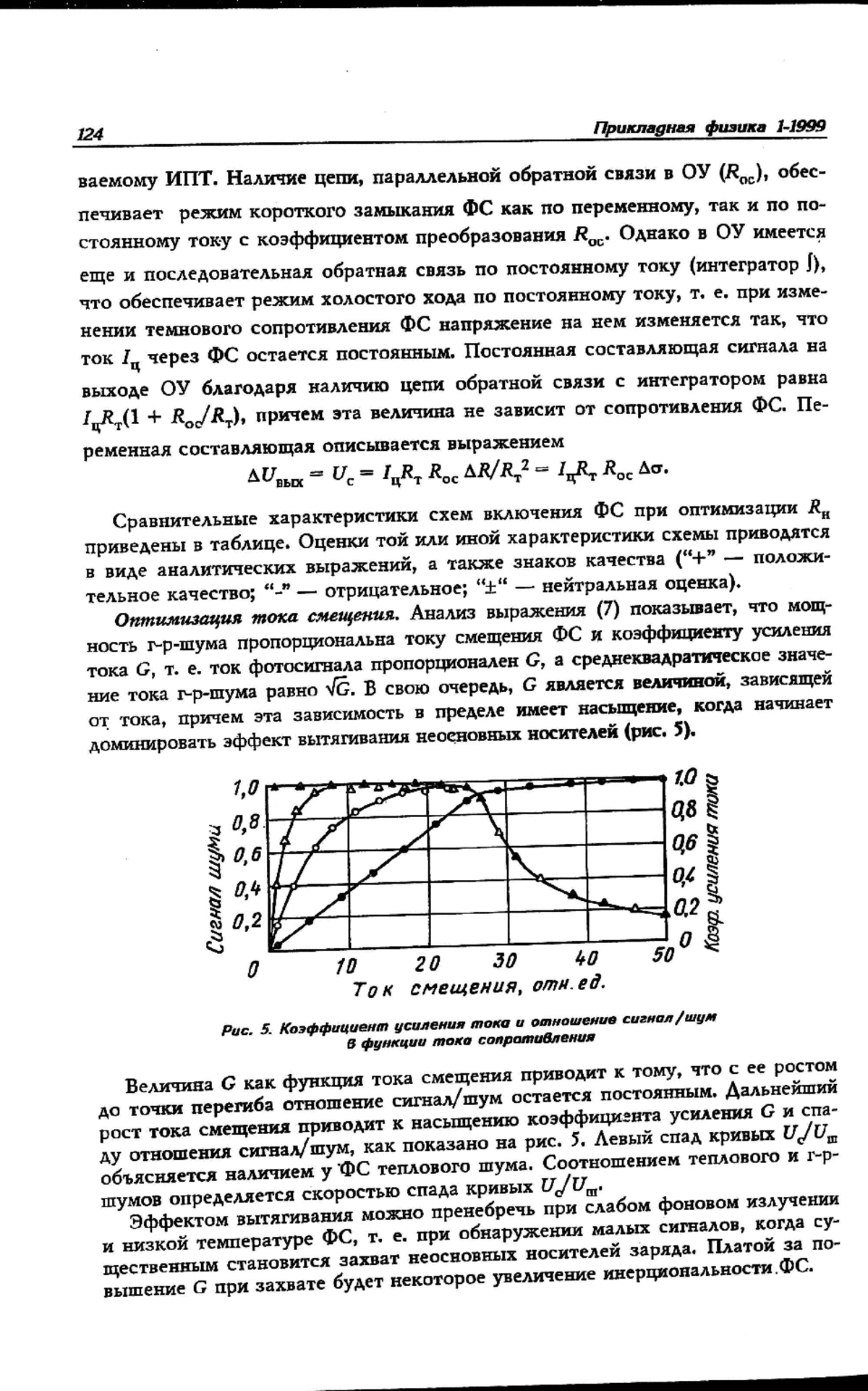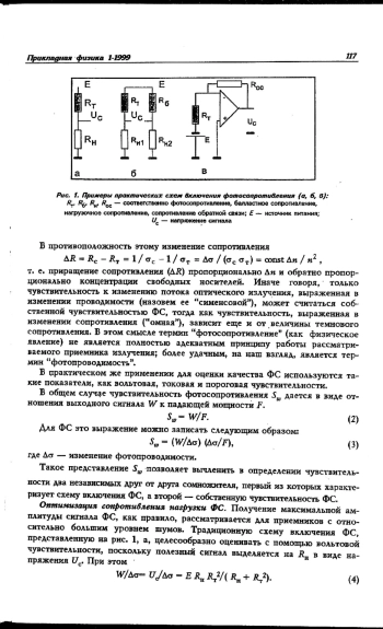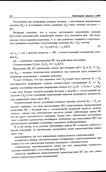 Оптимизация сопротивления нагрузки по критерию максимума амплитуды сигнала для случая, когда собственные шумы ФС относительно входного каскада усилителя велики, либо нецелесообразна, поскольку возможна перегрузка усилителя по постоянной составляющей сигнала (см. схему на рис. 1, в), либо вредна, так как требует большого напряжения питания и ухудшает собственные характеристики ФС (см. схемы на рис. 1, а, б).