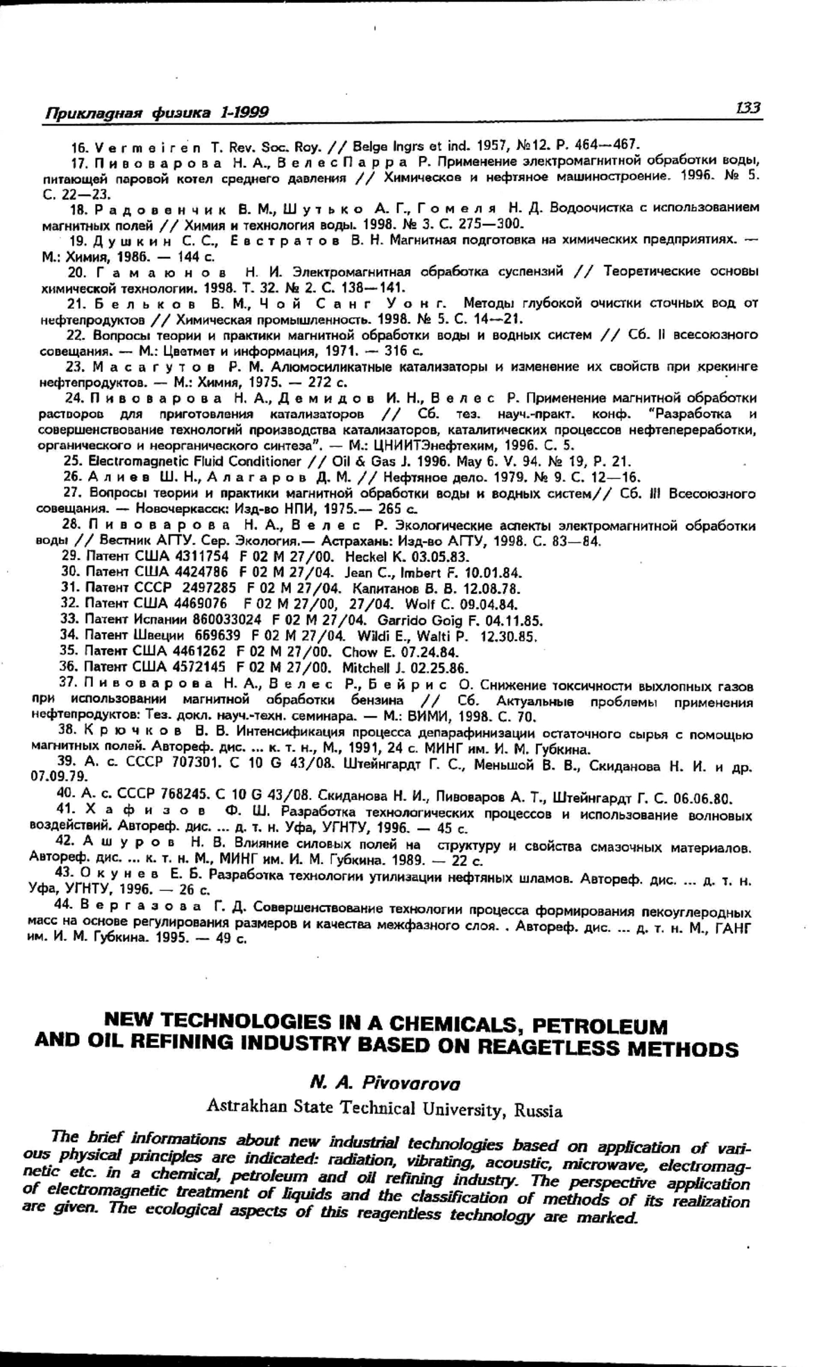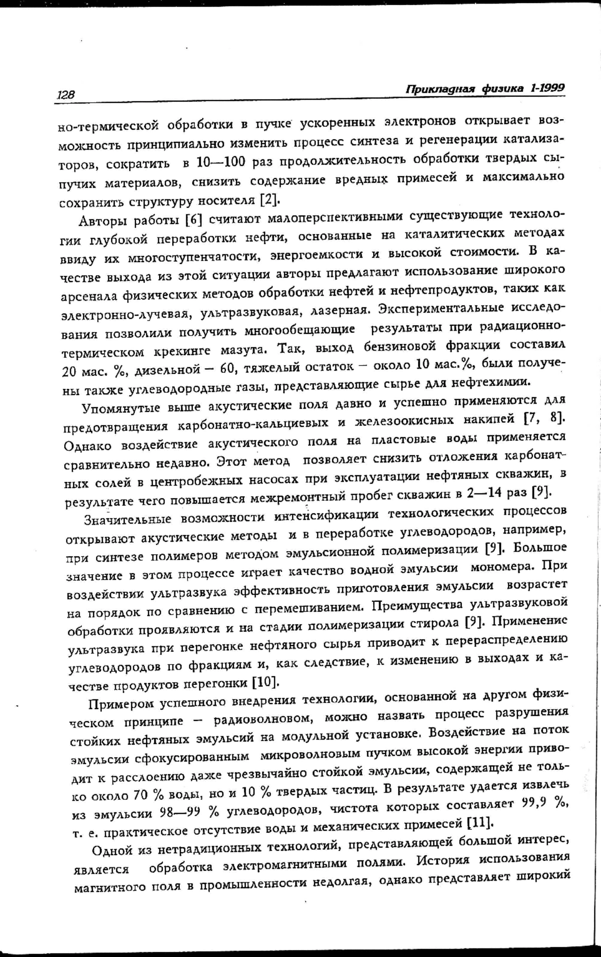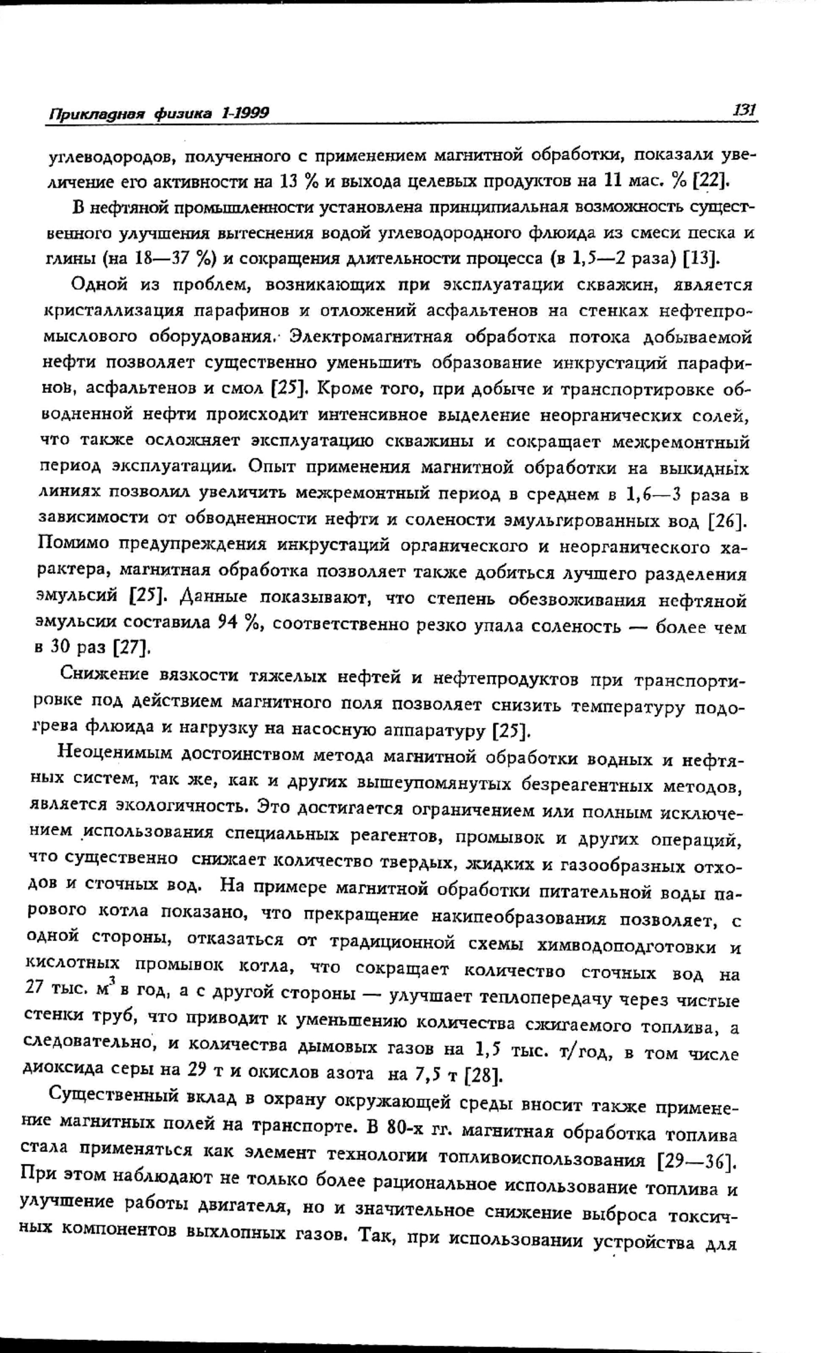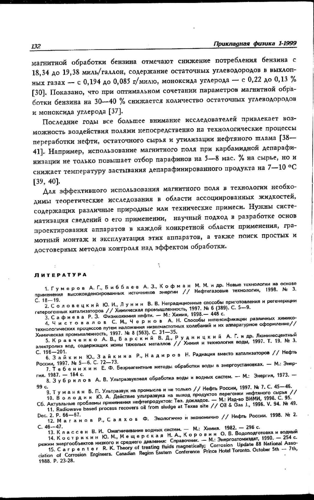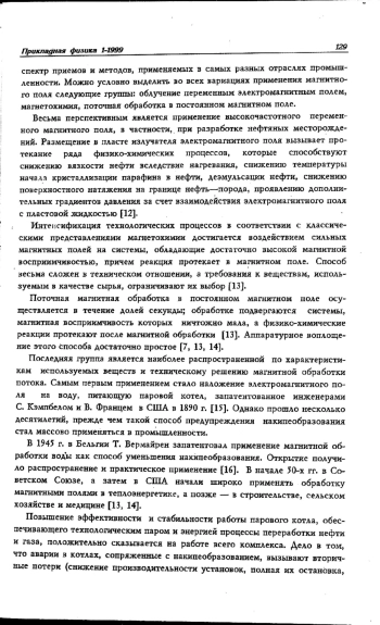 Приведены краткие сведения о новых промышленных технологиях, основанных на применении различных физических принципов: радиационном, вибрационном, акустическом, микроволновом, электромагнитном и др. в химической, нефтяной и нефтеперерабатывающей промышленности. Показана перспективность применения электромагнитной обработки жидкостей и дана классификация способов ее осуществления. Описаны экологические аспекты этой безреагентной технологии.
