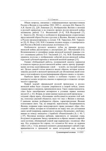 11. Сидякина Н.И. Визуальная самопрезентация России и Японии в период русско-японской войны 1904-1905 гг. Гуманитарные исследования в Восточной Сибири и на Дальнем Востоке, 2014, № 2, с. 17-22.