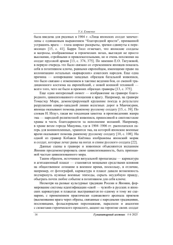13. Тягунова Е.О. Жанр военной гравюры (сэнсо-э) в японском искусстве периода Мэйдзи (1868-1912 гг.): формирование, тенденции и влияние. Декоративное искусство и предметно-пространственная среда. Вестник РГХПУ им. С.Г. Строганова, 2023, № 4-2, с. 369-379.
