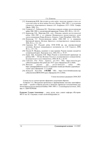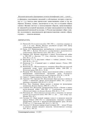 7. Федорова Н.В. Визуальные образы русско-японской войны в контексте формирования патриотических настроений. Труды Ростовского государственного университета путей сообщения, 2018, № 1, с. 84-90.