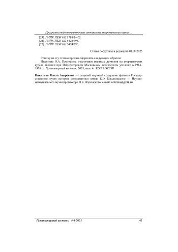 7. XXII Научные чтения по авиации, посвященные памяти Н.Е. Жуковского. К 105-летию ВВИА им. проф. Н.Е. Жуковского. Программа конференции. URL: https://vntkzhukovskogo.ru/dl_files/ru_programm_TSCA.pdf (дата обращения 10.05.2025).