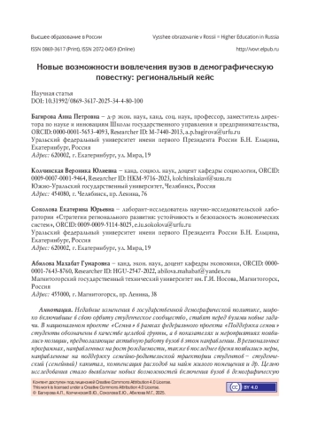 Недавние изменения в государственной демографической политике, широко включившие в свою орбиту студенческое сообщество, ставят перед вузами новые задачи. В национальном проекте «Семья» в рамках федерального проекта «Поддержка семьи» студенты обозначены в качестве целевой группы, а в показателях и мероприятиях появились позиции, предполагающие активную работу вузов в этом направлении. В региональных программах, направленных на рост рождаемости, также в последнее время появились меры, направленные на поддержку семейно-родительской траектории студентов - студенческий (семейный) капитал, компенсация расходов на найм жилого помещения и др. Целью исследования стало выявление новых возможностей включения вузов в демографическую повестку через механизм информирования студентов об участии бизнеса в смягчении демографических проблем индустриального региона. Объектом эмпирического исследования выступили студенты последних двух курсов очной формы обучения вузов Челябинской области - региона, где в 2024 году была введён студенческий (семейный) капитал за рождение ребёнка, где на ряде промышленных предприятий давно реализуются меры поддержки семей работников, где наблюдается самый низкий в УрФО уровень региональной рождаемости. Серия исследований (анкетный опрос, эссе) была проведена в октябре-ноябре 2024 г. в двух крупнейших вузах региона. Результаты показали, что осведомлённость студентов о мерах корпоративной поддержки семейных работников является значимым фактором, коррелирующим с их репродуктивными ориентациями: чем более осведомлены студенты о мерах поддержки, тем больше детей они планируют иметь. Это открывает новый инструмент вовлечения вузов в демографическую повестку страны и регионов. Разработаны рекомендации, направленные на выстраивание системной работы работодателей, вузов и органов власти по интеграции информации о корпоративных демографических мерах в ментальный и практический контекст молодёжи.