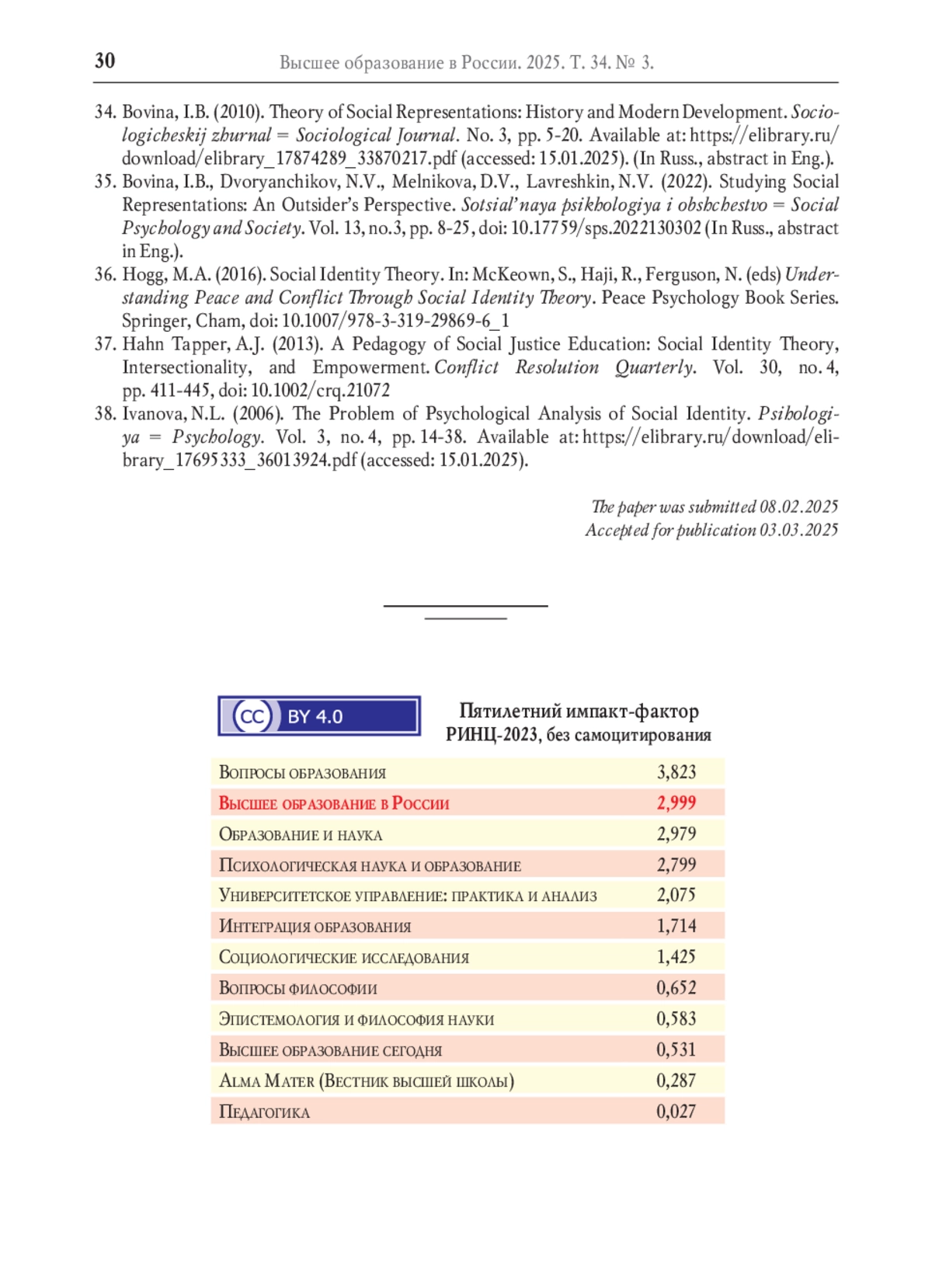 38. Иванова Н.Л. Проблема психологического анализа социальной идентичности // Психология. 2006. Т. 3. № 4. С. 14-38. EDN: OXFXHH