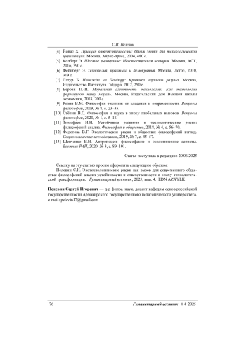 12. Федотова В.Г. Экологические риски и общество: философский взгляд. Социологические исследования, 2019, № 7, с. 45-57.