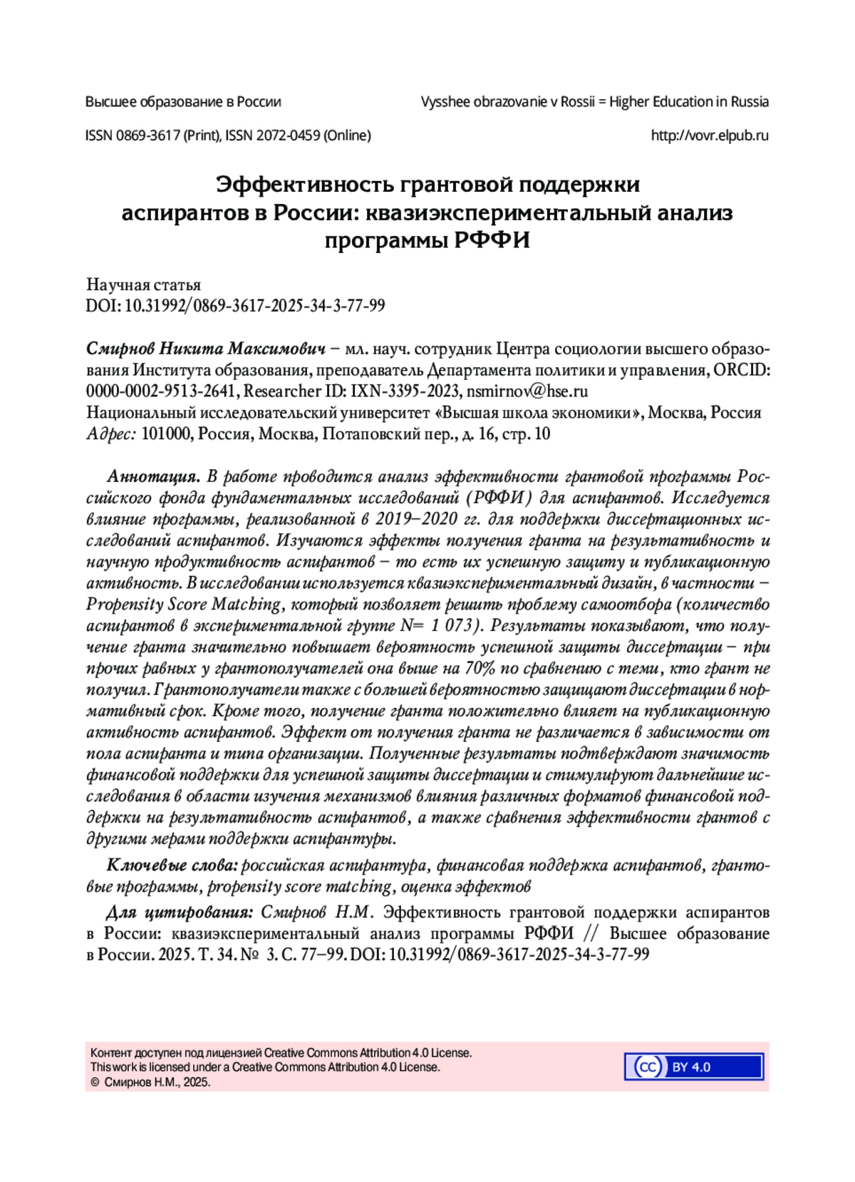 23. Нефедова А.И., Дьяченко Е.Л. Реформа аспирантуры в России в зеркале глобальных трендов // Мир России. 2019. Т. 28. № 4. С. 92-111. DOI: 10.17323/1811-038X-2019-28-4-92-111