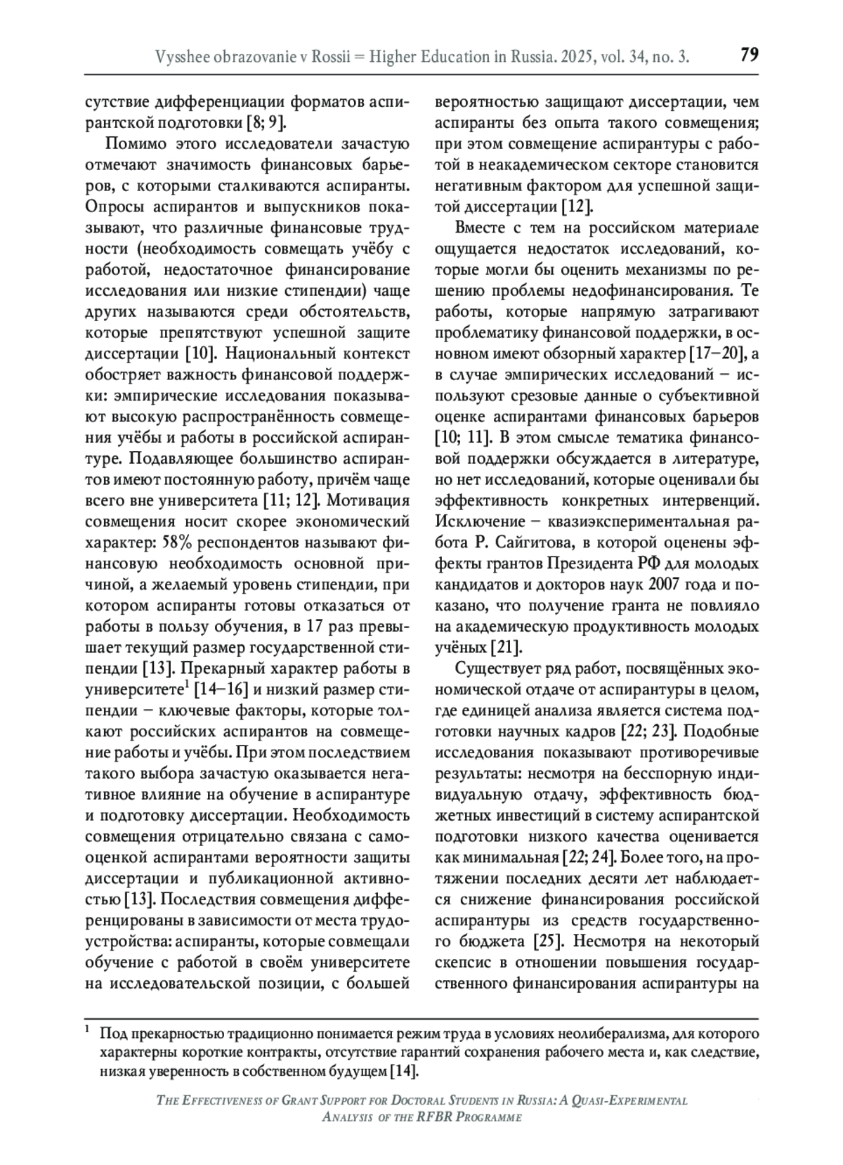20. Бабаева Дж., Малошонок Н.Г. Систематический обзор финансовой поддержки аспирантов: типология практик и перспективы // Высшее образование в России. 2025. Т. 34. № 2. С. 86-107. DOI: 10.31992/0869-3617-2025-34-2-86-107 EDN: SNUIUL