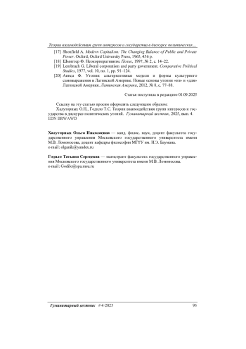 19. Lembruch G. Liberal corporatism and party government. Comparative Political Studies, 1977, vol. 10, no. 1, рp. 91-124.