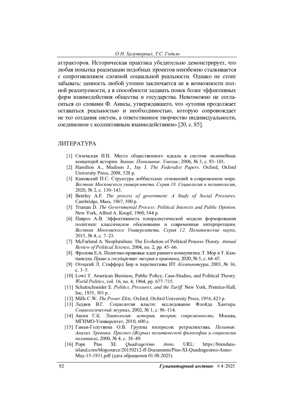15. Гаман-Голутвина О.В. Группы интересов: ретроспектива. Полития: Анализ. Хроника. Прогноз (Журнал политической философии и социологии политики), 2000, № 4, с. 38-49.