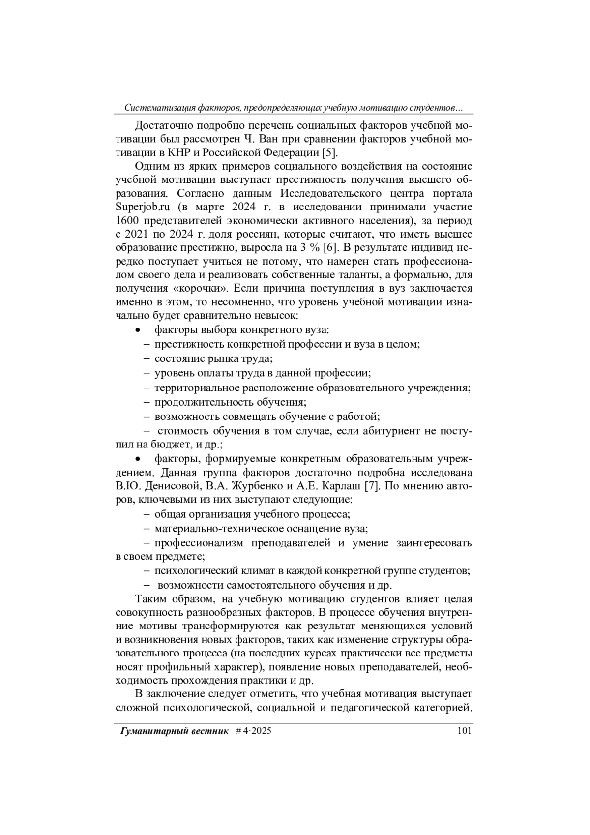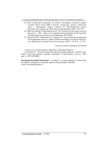 5. Ван Ч. Факторы, влияющие на учебную мотивацию студентов: сравнительный анализ вузов КНР и России. Актуальные вопросы общества, науки и образования: сборник статей XVI Международной научно-практической конференции. Пенза, Наука и Просвещение, 2024, с. 210-213.