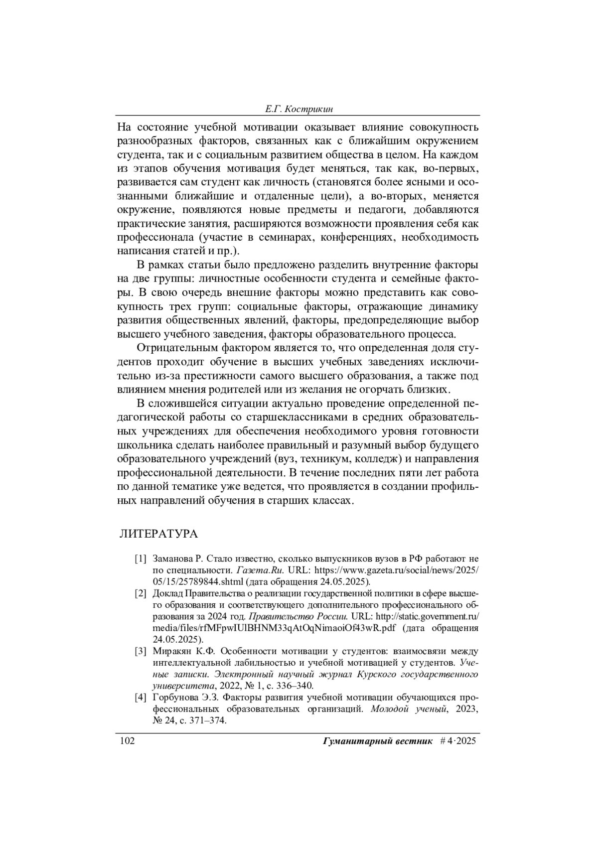 1. Заманова Р. Стало известно, сколько выпускников вузов в РФ работают не по специальности. Газета.Ru. URL: https://www.gazeta.ru/social/news/2025/05/15/25789844.shtml (дата обращения 24.05.2025).