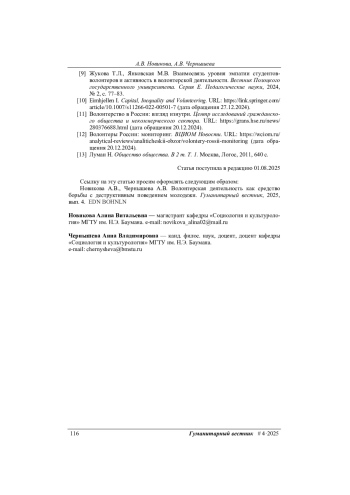 10. Eimhjellen I. Capital, Inequality and Volunteering. URL: https://link.springer.com/article/ (дата обращения 27.12.2024). DOI: 10.1007/s11266-022-00501-7