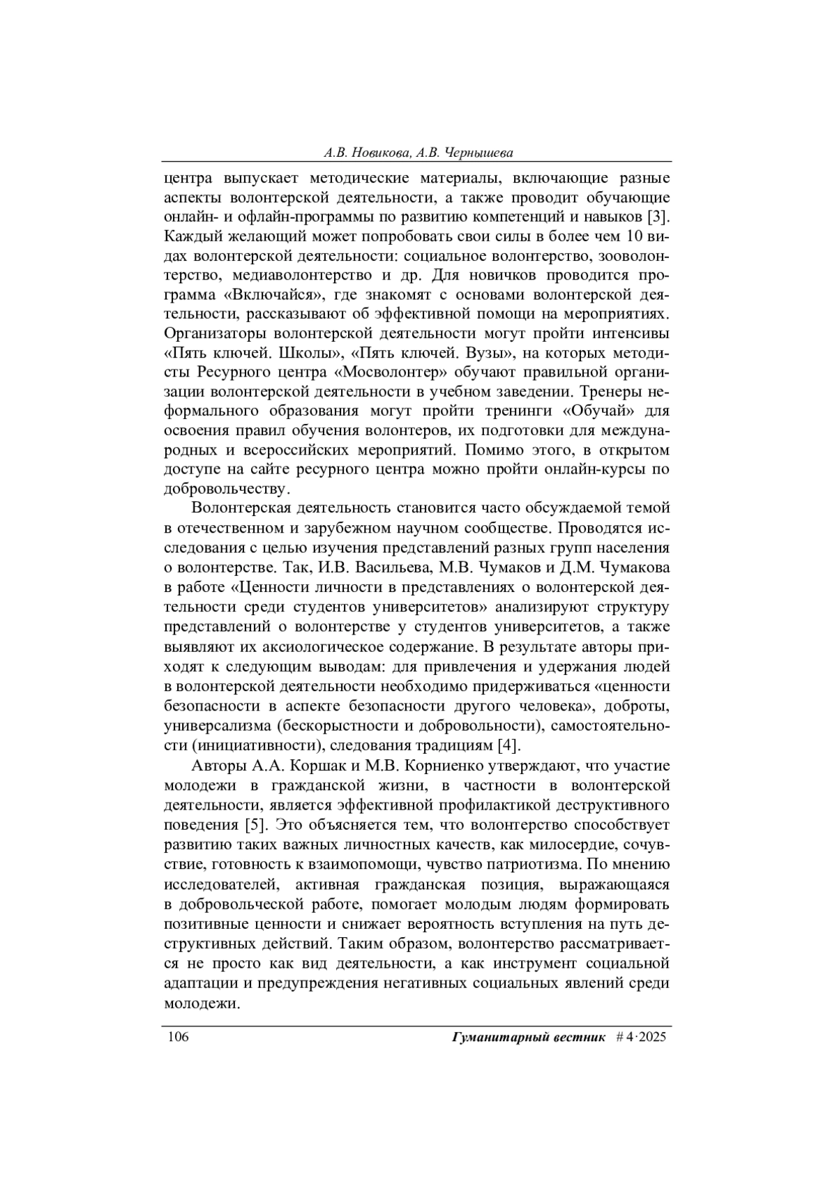 5. Коршак А.А., Корниенко М.В. Развитие гражданской активности молодежи как способ профилактики деструктивного поведения. Научный результат. Педагогика и психология образования, 2022, т. 8, № 1, с. 38-47.