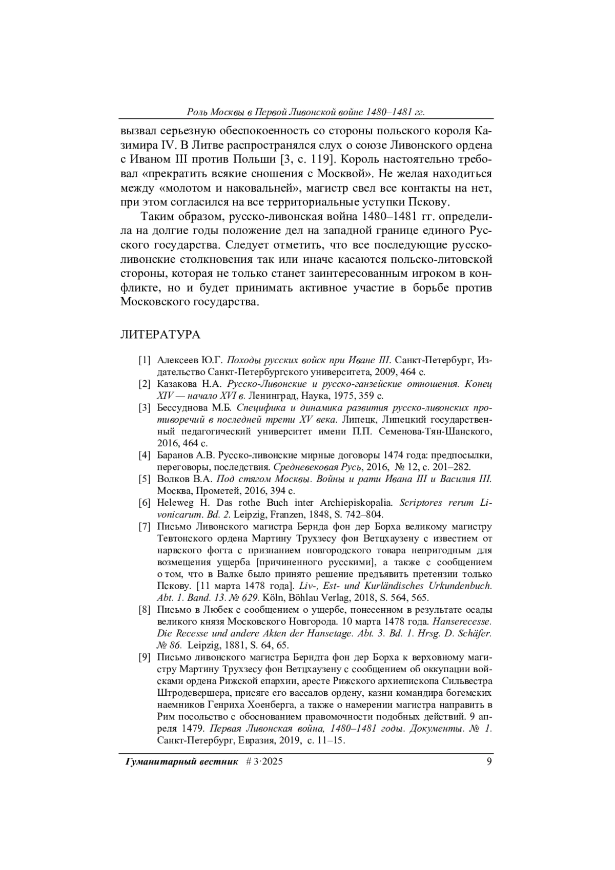 3. Бессуднова М.Б. Специфика и динамика развития русско-ливонских противоречий в последней трети XV века. Липецк, Липецкий государственный педагогический университет имени П.П. Семенова-Тян-Шанского, 2016, 464 с.