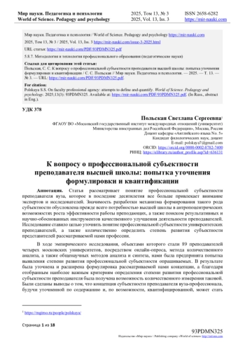 Понятие профессиональной субъектности преподавателей все чаще включается в повестку дня современного общества, особенно в контексте турбулентности процессов настоящего и неопределенности будущего.