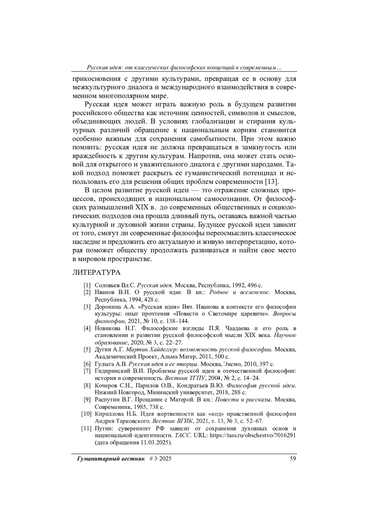 7. Гидиринский В.И. Проблемы русской идеи в отечественной философии: история и современность. Вестник ТГПУ, 2004, № 2, с. 14-24. E