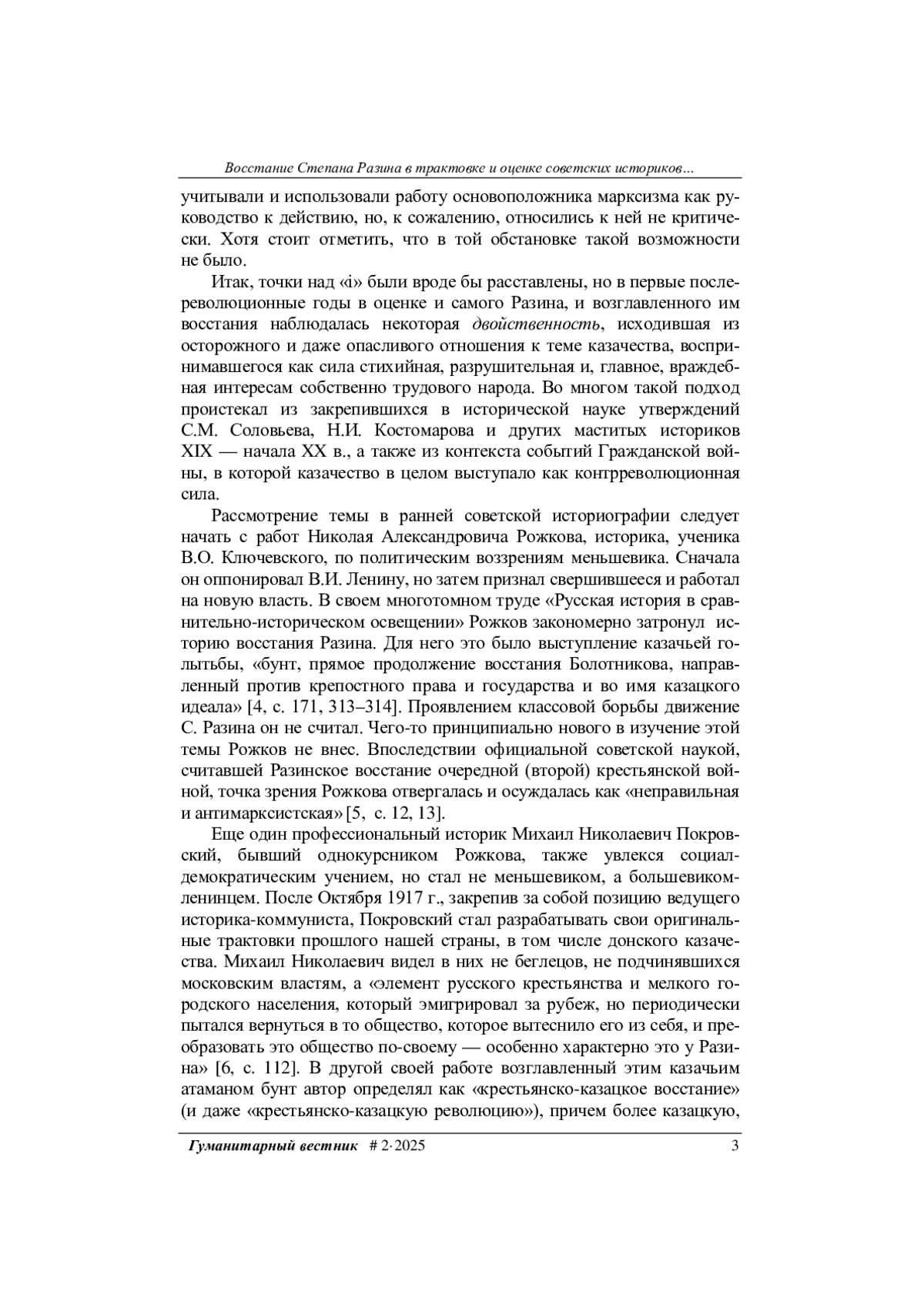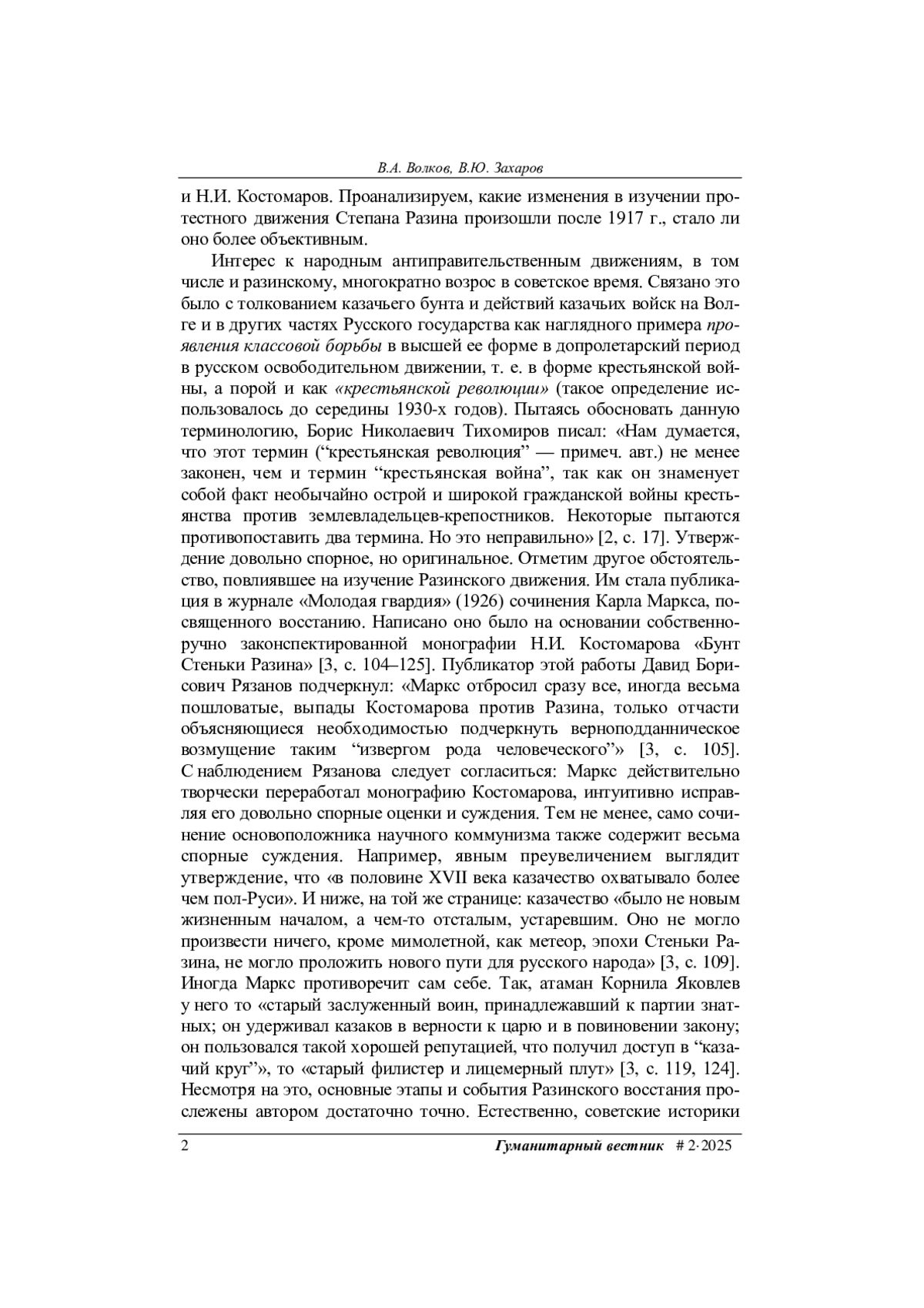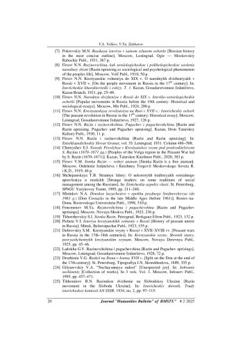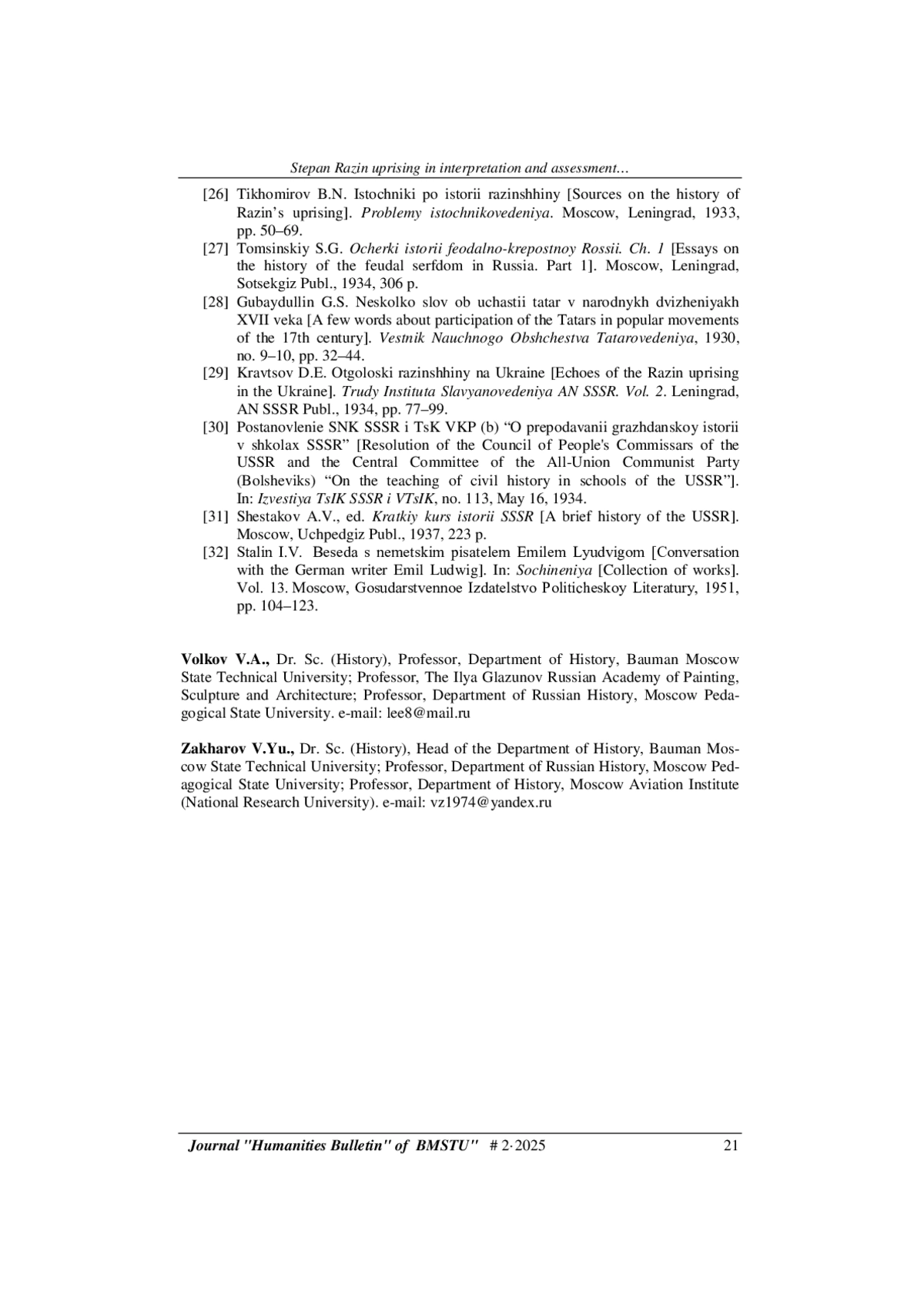 1. Волков В.А., Захаров В.Ю. Восстание Степана Разина в трудах русских историков XVIII - начала XX в. Гуманитарный вестник, 2025, вып. 1.