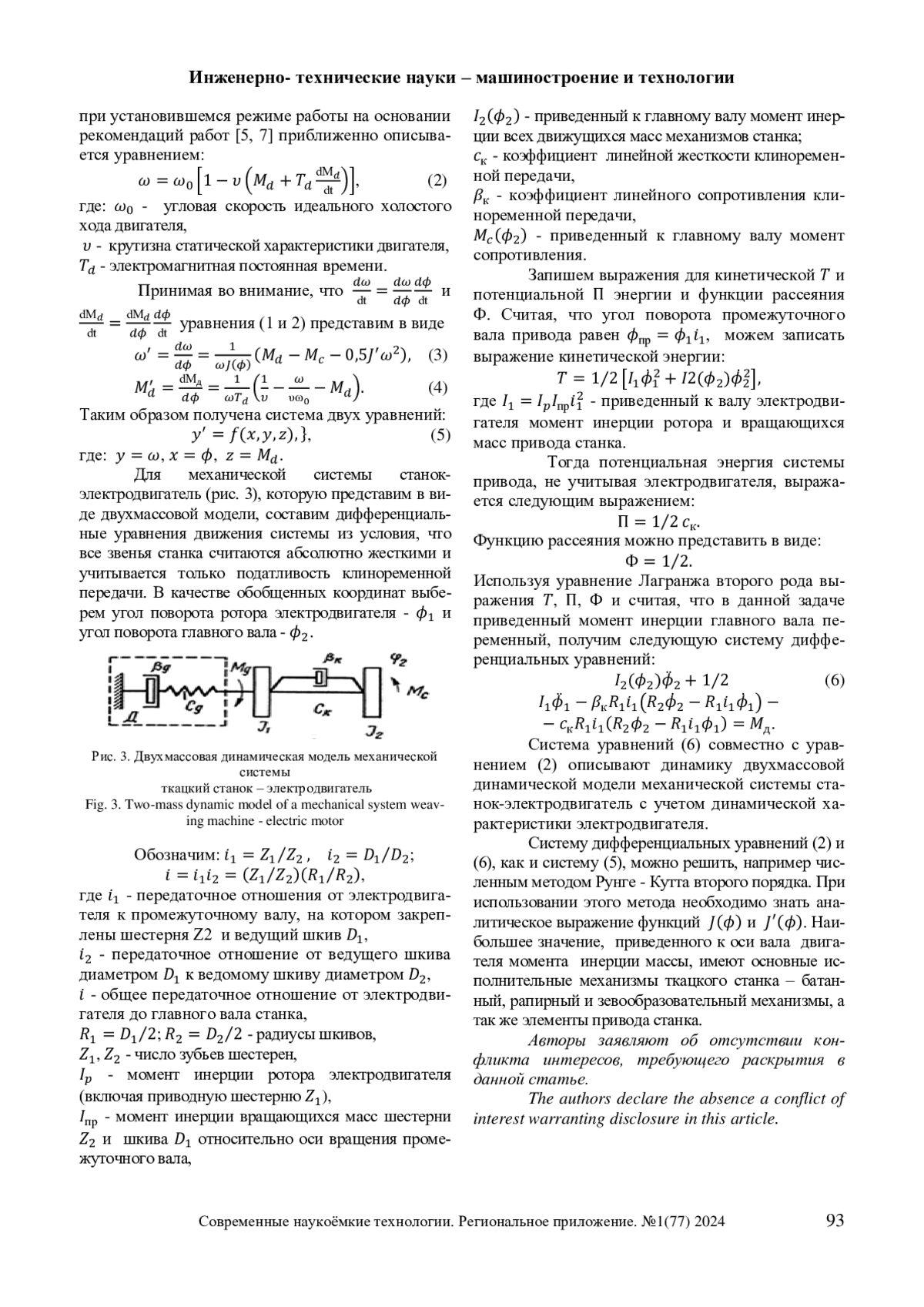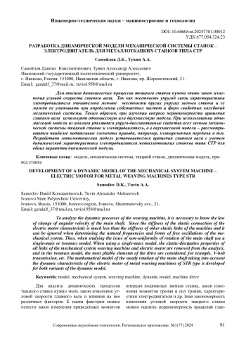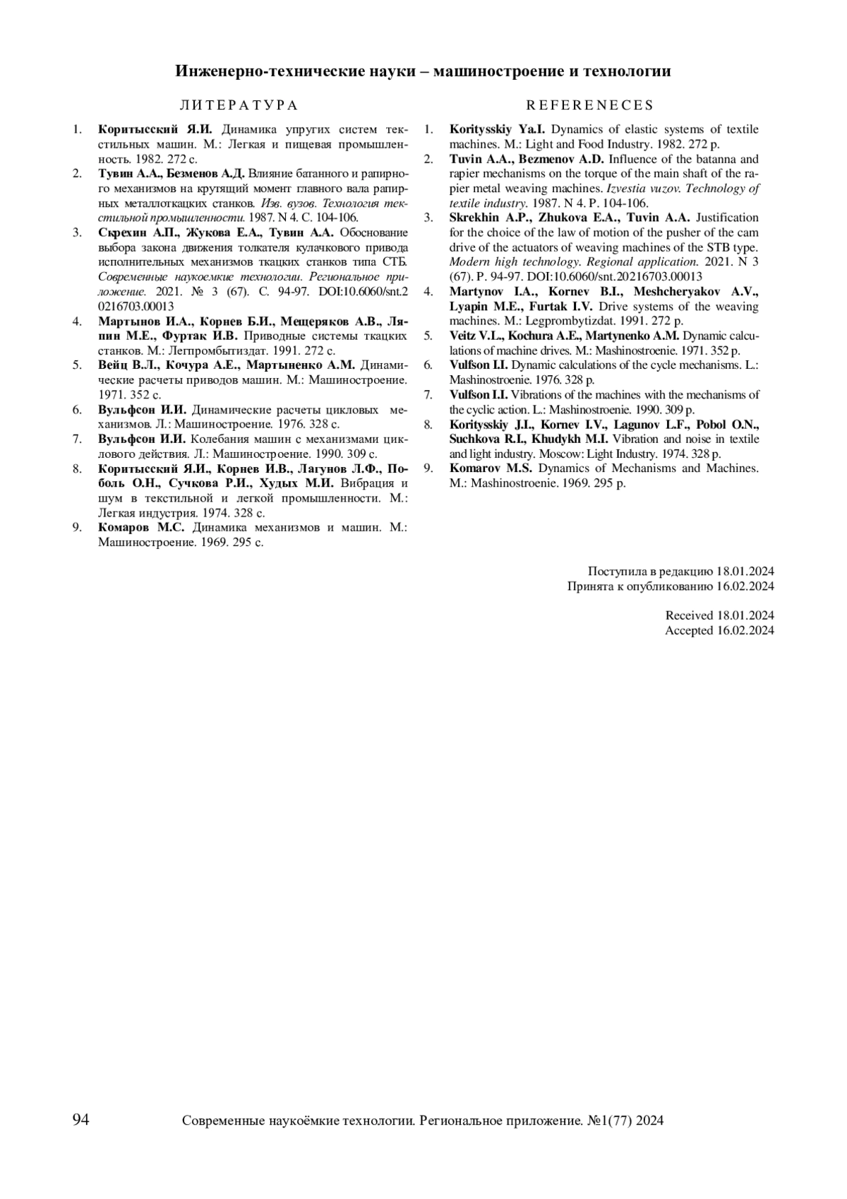 2. Тувин А.А., Безменов А.Д. Влияние батанного и рапирного механизмов на крутящий момент главного вала рапирных металлоткацких станков. Изв. вузов. Технология текстильной промышленности. 1987. N 4. С. 104-106.