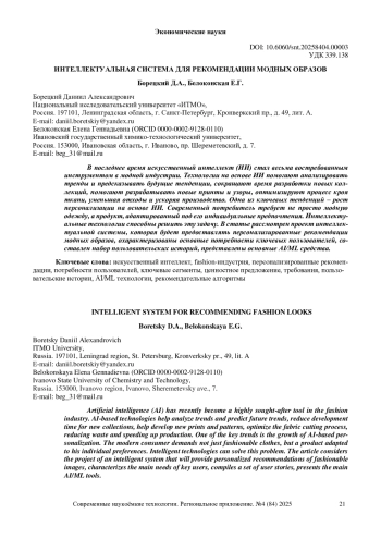 В последнее время искусственный интеллект (ИИ) стал весьма востребованным инструментом в модной индустрии. Технологии на основе ИИ помогают анализировать тренды и предсказывать будущие тенденции, сокращают время разработки новых коллекций, помогают разрабатывать новые принты и узоры, оптимизируют процесс кроя ткани, уменьшая отходы и ускоряя производство. Одна из ключевых тенденций - рост персонализации на основе ИИ. Современный потребитель требует не просто модную одежду, а продукт, адаптированный под его индивидуальные предпочтения. Интеллектуальные технологии способны решить эту задачу. В статье рассмотрен проект интеллектуальной системы, которая будет предоставлять персонализированные рекомендации модных образов, охарактеризованы основные потребности ключевых пользователей, составлен набор пользовательских историй, представлены основные AI/ML средства.