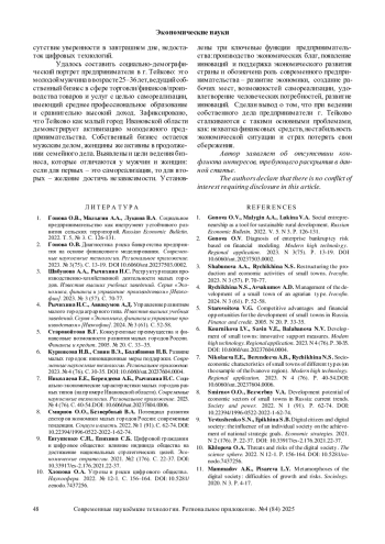 6. Курникова И.В., Савин В.Э., Балабанова Н.В. Развитие малых городов: инновационные меры поддержки. Современные наукоемкие технологии. Региональное приложение. 2023. № 4 (76). С. 30-35. DOI: 10.6060/snt.20237604.0004 EDN: EOGJFA
