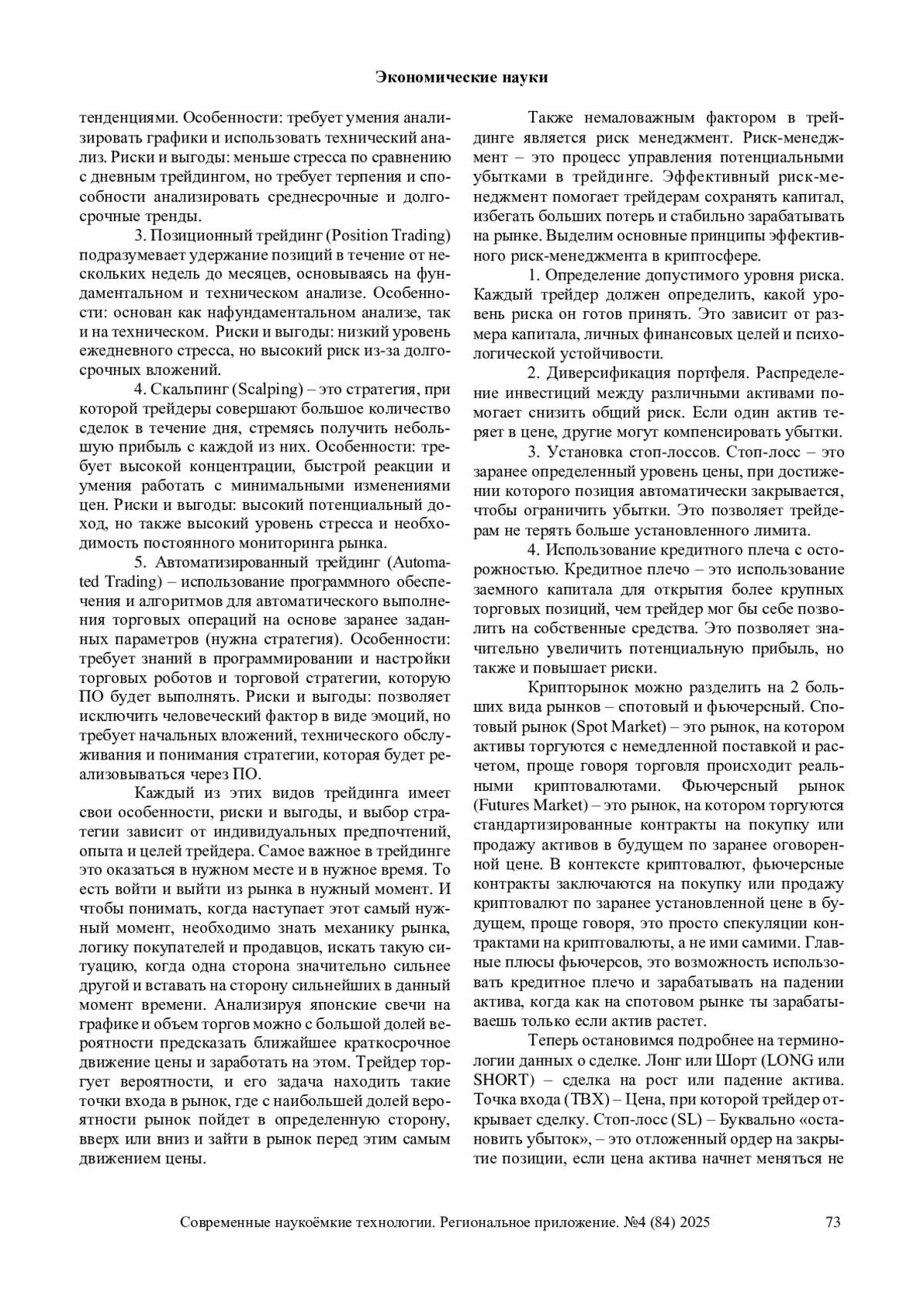 Трейдинг в криптосфере. Сначала рассмотрим, что же из себя представляет трейдинг. Анализ экономической литературы показывает, что трейдинг – это процесс покупки и продажи финансовых активов, таких как валюта, акции, криптовалюты, фьючерсы и другие инструменты на бирже [1-3].