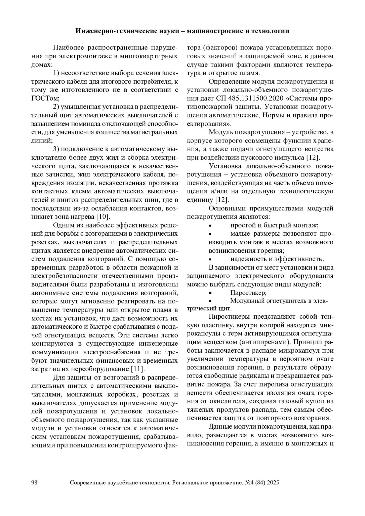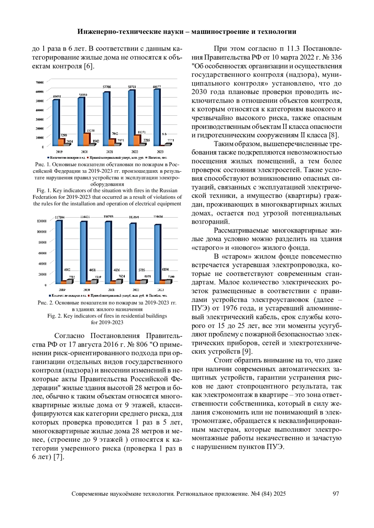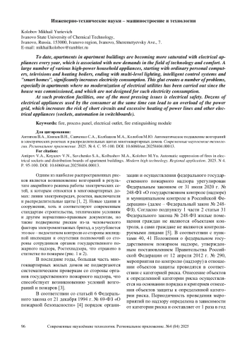 Одним из наиболее распространенных рисков является возникновение возгораний в результате аварийного режима работы электрических сетей, к которым относятся в многоквартирных домах: линии электропередач, розетки, выключатели и распределительные щиты [1, 2].