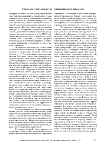 В статье исследуются агентные интеллектуальные системы сквозь призму системного анализа как научной и инженерной дисциплины. Представлена эволюция агентно-ориентированного подхода при построении интеллектуальных распределенных систем. Выделены ключевые функциональные свойства таких систем, а именно автономность, реактивность, проактивность, социальность и непрерывность функционирования. Проведен анализ актуальных научных подходов к проектированию архитектуры многоагентных систем и обоснована их значимость для задач, связанных с автоматизацией интеллектуального управления в усложненных информационных средах. Особое внимание уделено вопросам самообучения агентов, устойчивости поведения в динамичных средах и возможности их применения в задачах автоматизированного тестирования на проникновение.