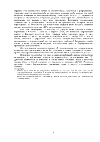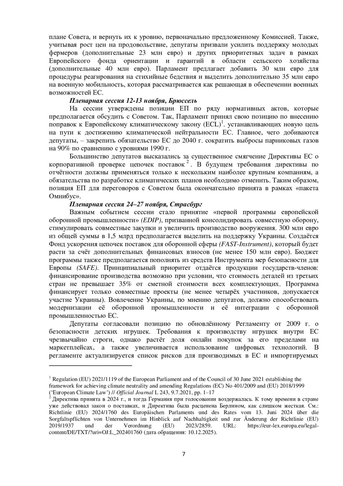 На сессии принят ряд нормативов, важных для интеграционного процесса, по которым ранее уже был достигнут компромисс с Советом. Так, парламент одобрил поправки к Регламентам о механизме трансграничного углеродного регулирования (CBAM) в рамках пакета мер программы «Омнибус I», цель которой ‒ снижение объёма бюрократической нагрузки на импортеров углеродоемких товаров. Устанавливается минимальный порог (50 т в год на импортера), ниже которого правила СВАМ не действуют. Выигрывают от этой меры малые и средние предприниматели. Упрощаются и правила импорта, остающегося под действием CBAM, прежде всего во всём, что касается процесса получения разрешений, а также расчёта выбросов и отчётности